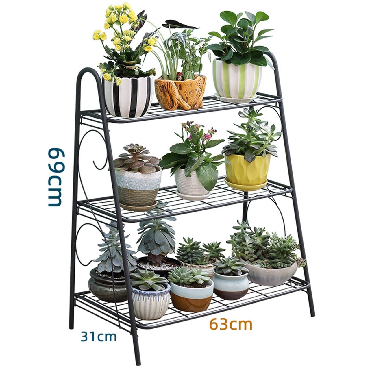 ❤【ディスプレイが良く、散らかりにくい】多くの植物を収納するのに十分な頑丈な植物ラックをお探しかもしれません。 この階層型植物スタンドはまさにあなたが望むものです。3段高植物スタンドは、省スペースとして機能し、複数のポットを展示します。植物のスタンドは、地面から鉢植えられて植物をきれいに保持するのに適しています。裏庭で素敵に見えます。