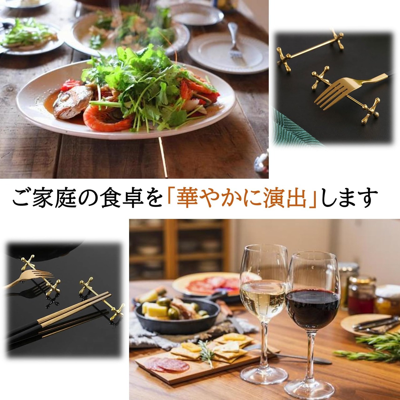 ラグジュアリーなカトラリーレストゴールド色4個セットです。Fine diningなどのレストランからご家庭の食卓まで華やかで贅沢な一時を演出するカトラリーレストです。