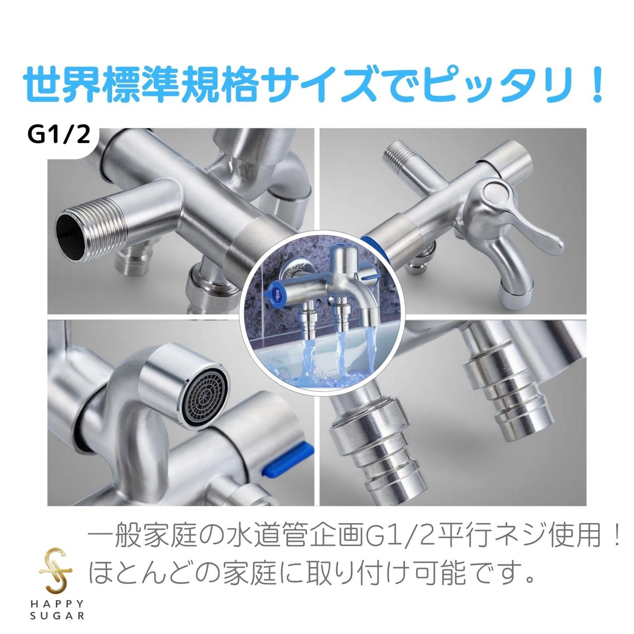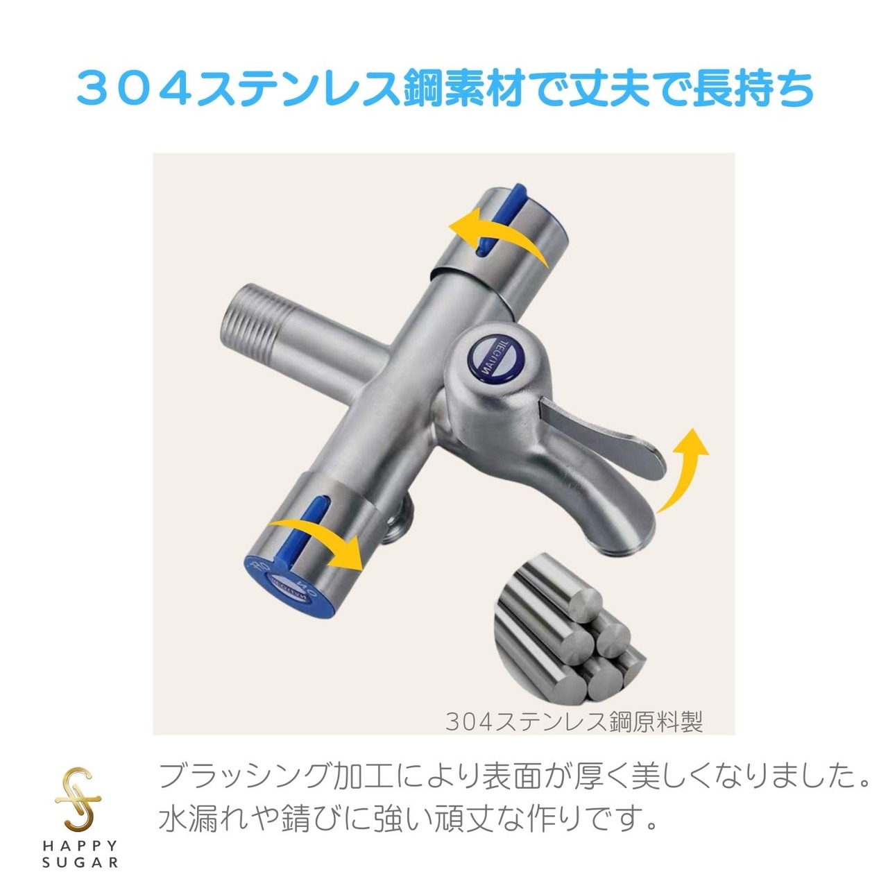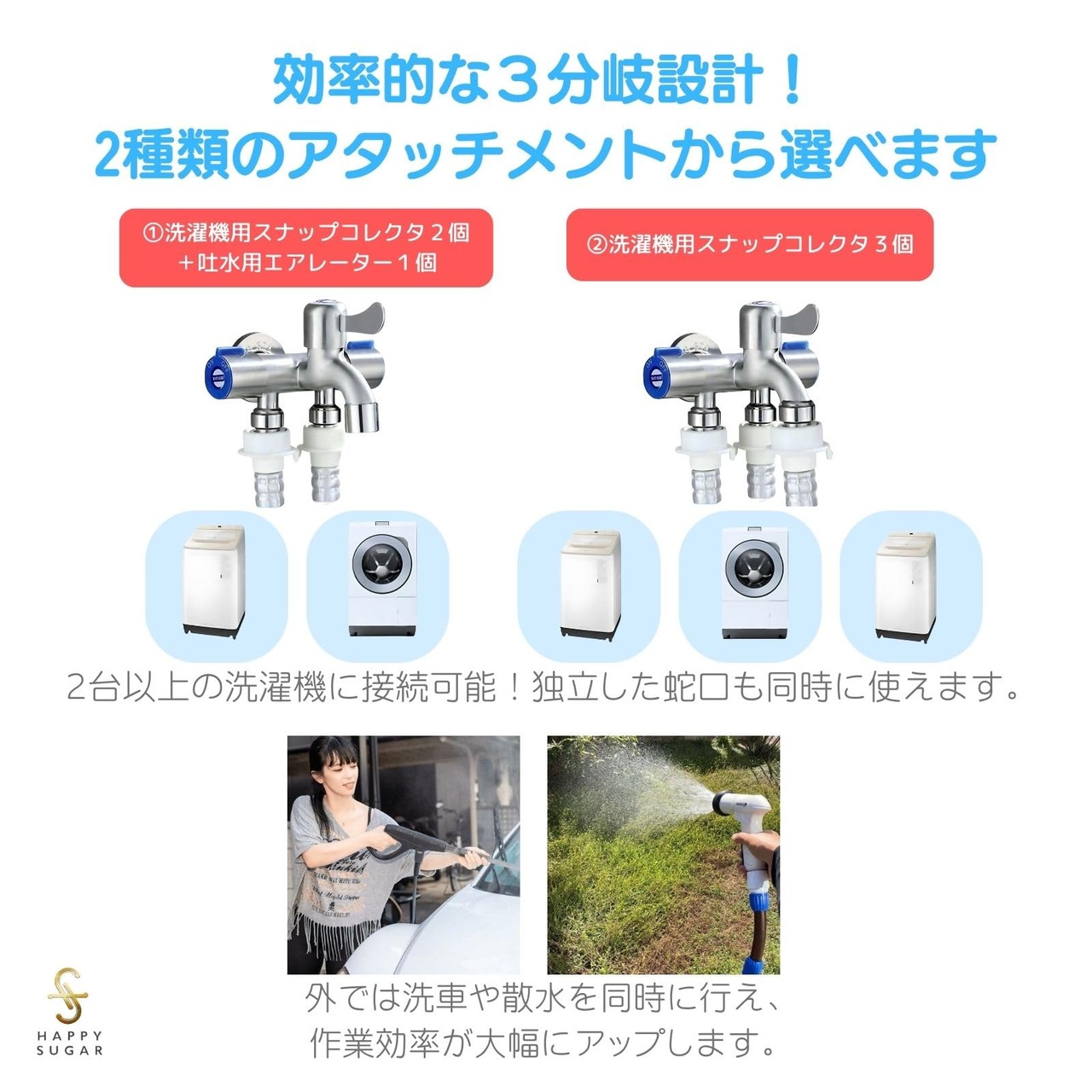 HAPPY SUGAR 3分岐 水道栓 洗濯機用 水栓 水道 蛇口 分岐 食洗機 外水栓 ホース シャワー スロップシンク 3口 (泡沫キャップ 1口 洗濯機取付 2口)
