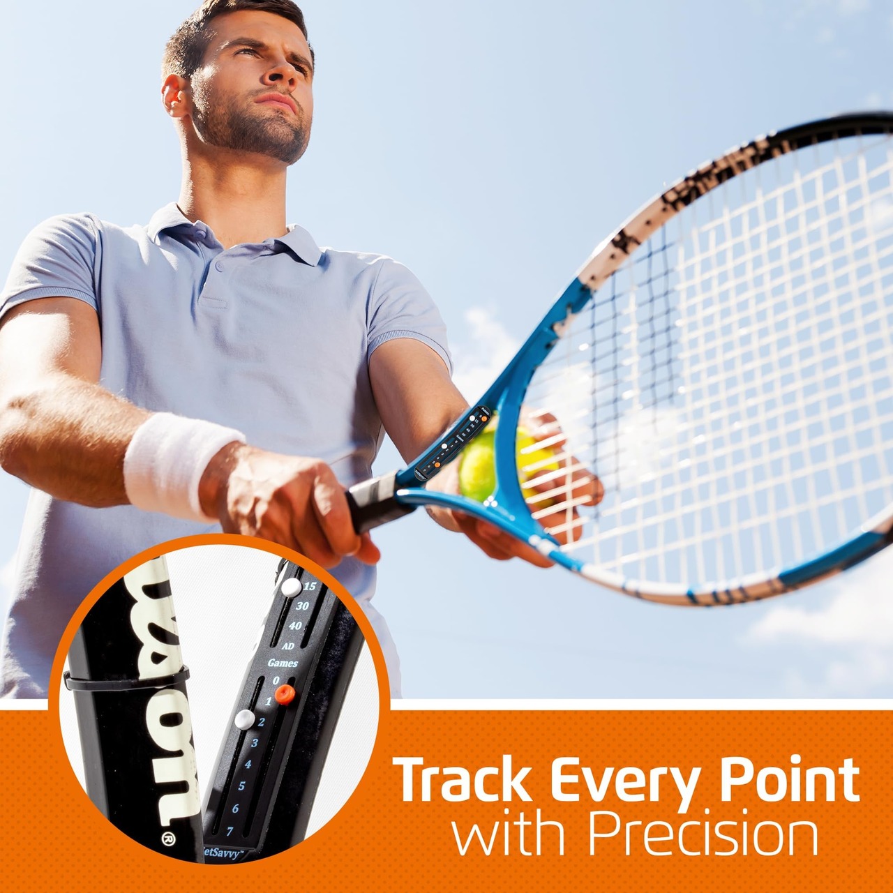 SetSavvyのご紹介。究極のテニススコアキーパー。試合をより良くするためにデザインされています。 この軽量でポータブルなテニスアクセサリーは、ポイント、ゲーム、セットを簡単に記録するのに最適なテニスガジェットです。 ラケットとパドル用のテニススコアキーパー。小型で、ポイント、ゲーム、セットを記録するための取り付けが簡単なポイントトラッカー、フェザーウェイトスコア保持デバイス、2g(ブラック)。SetSavvyテニススコアカウンターを3Mの自動車グレードの接着剤またはジップタイを使用して、ラケットの喉の内側または外側に簡単に取り付けることができます。 最も過酷な条件に耐えるように作られており、強力なサーブや試合中も安定しています。 クリアでシンプルなディスプレイは、サービングサイドを素早く確認するのに役立ち、あらゆるレベルのプレーヤーにとって不可欠なツールです。 テニスのギフトに最適。SetSavvyはすべてのプレーヤーに必須のテニスアクセサリーです。実用性と使いやすさを1つの洗練されたデバイスに組み合わせています。 最高のテニススコアキーパーでテニス用品を強化し、スコアを見失うことはありません。