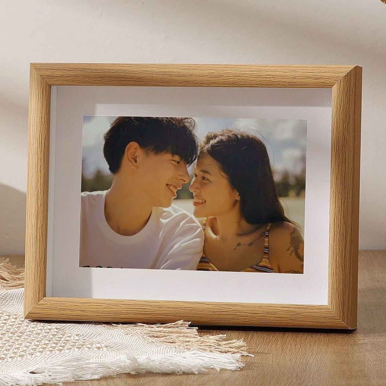 【木製フォトフレーム】天然素材で作られたフォトフレームです。木の持つあたたかい質感で、部屋をやわらな雰囲気にできます。