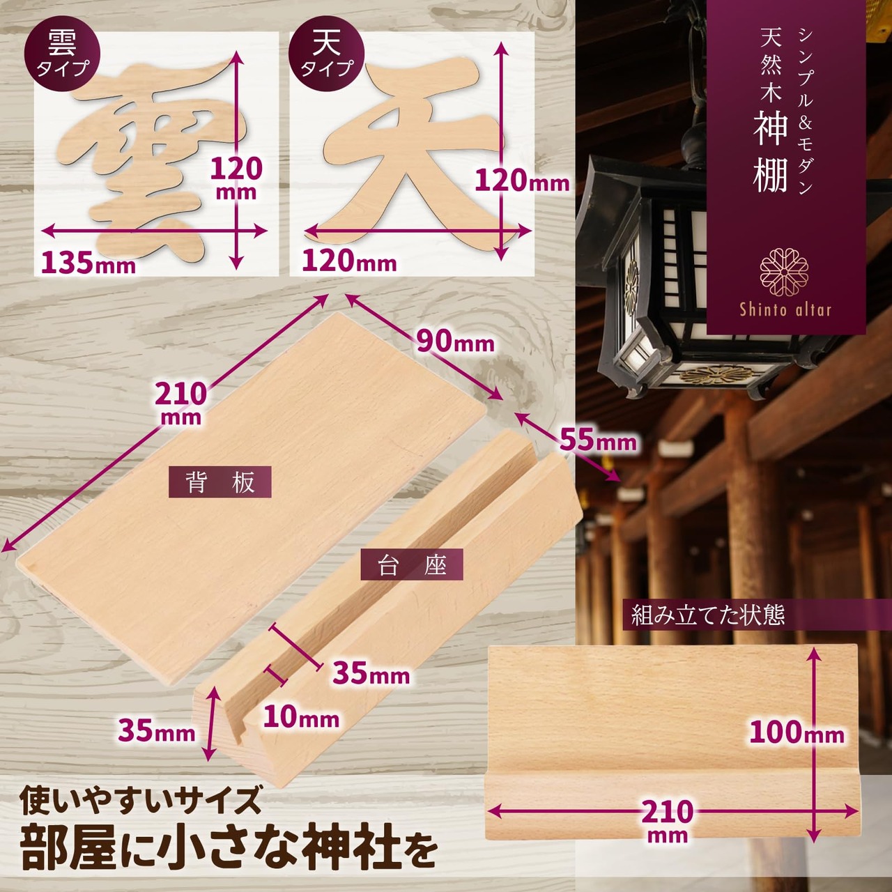 【寸法】神棚:幅21×奥行5.5×高さ10cm、雲:厚み4mm【機能】神棚:3社お祀り可能、雲:裏側シール付き【素材】ブナ【カラー】ナチュラル※天然木材のため色や木目の出方に個体差がございます※モニターの環境により、色の見え方に若干差が生じる場合がございます。