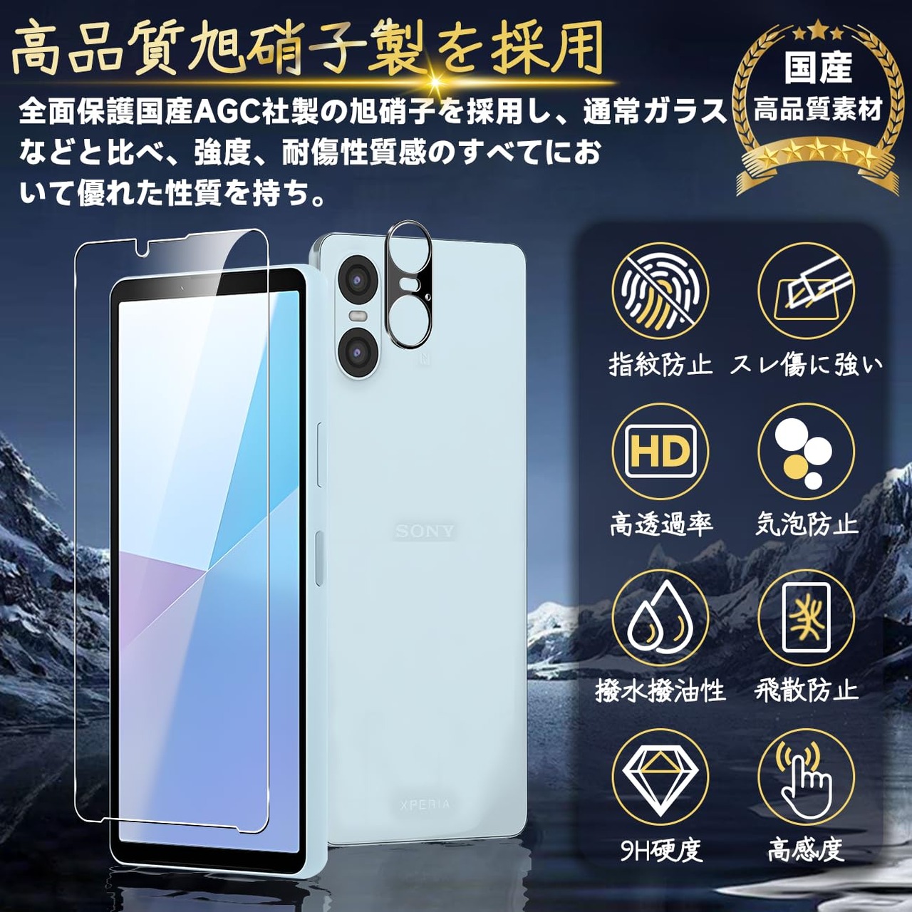 対応 xperia 10 VI ガラスフィルム xperia 10VI SO-52D SOG11 指紋防止 【2* フィルム + 2* レンズ保護フィルム + 1*取り除き発泡板】国産旭硝子材質 xperia10 VI SO-52D SOG11 薄型 強化ガラス xperia10VI 保護フィルム 高光沢 xperia 10 VI 液晶 ガラス ケース 9H硬度 厚さ0.26mm超薄型 高透過率 気泡なし ラウンドエッジ加工 簡単貼り付け 3D Touch対応 SENXLL-Xperia10VIG05