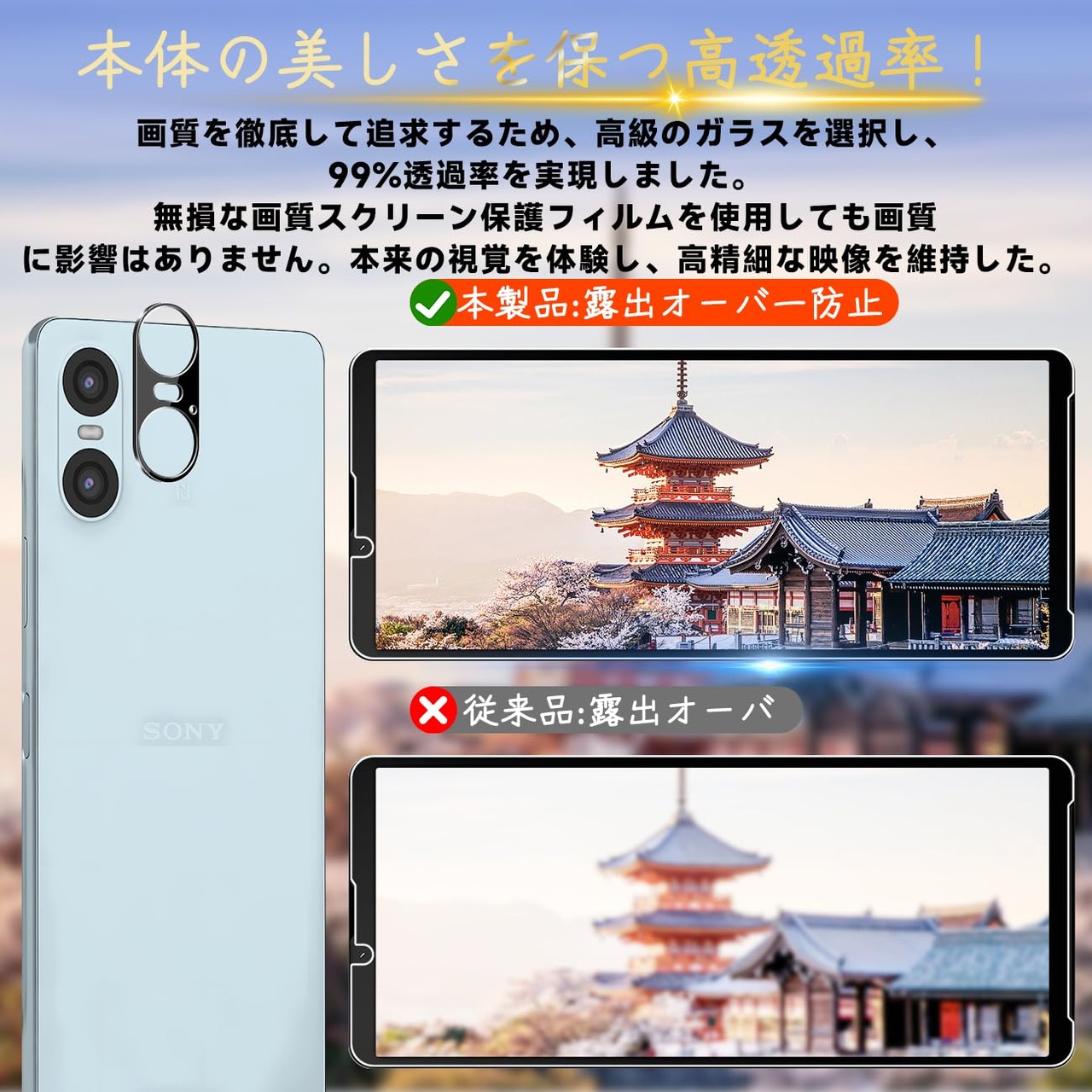 【専用設計·簡単に貼り付け】 本製品 xperia 10 VI SO-52D SOG11 専用液晶画面保護ガラスフィルムです。本商品は厳選した素材を採用して作られており、フィルムのシリコン自己吸着層があるので、スチールフィルムを携帯電話に合わせて軽く置くだけで、気泡が入らないように簡単に取り付けられます。(ポイント:フロントカメラのカメラ穴についてですが、ほこり・異物などの堆積を防止するため、ガラスフィルムにカメラ穴を開けていません。Seninhiのガラスフィルム 、透過率は99.9%なので、フロントカメラの正常使用に全く影響がありません。)*機種によってサイズが異なりますので、ご購入の場合に機種をよく確認してください。