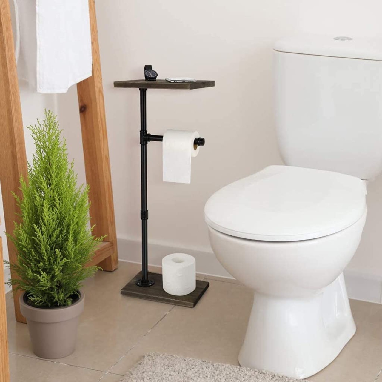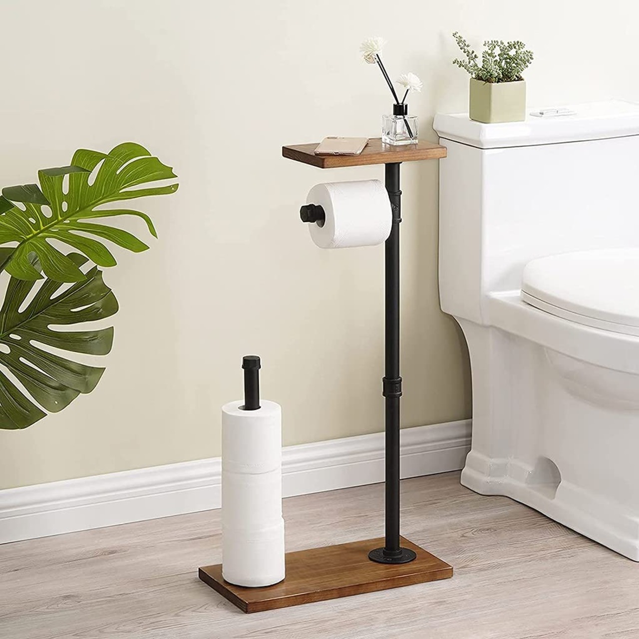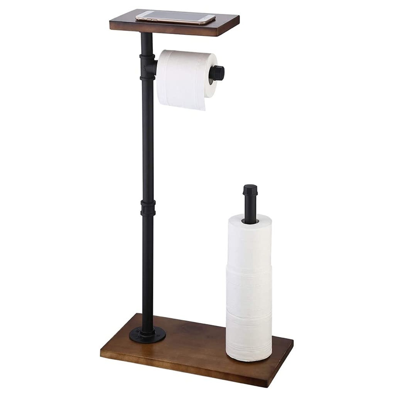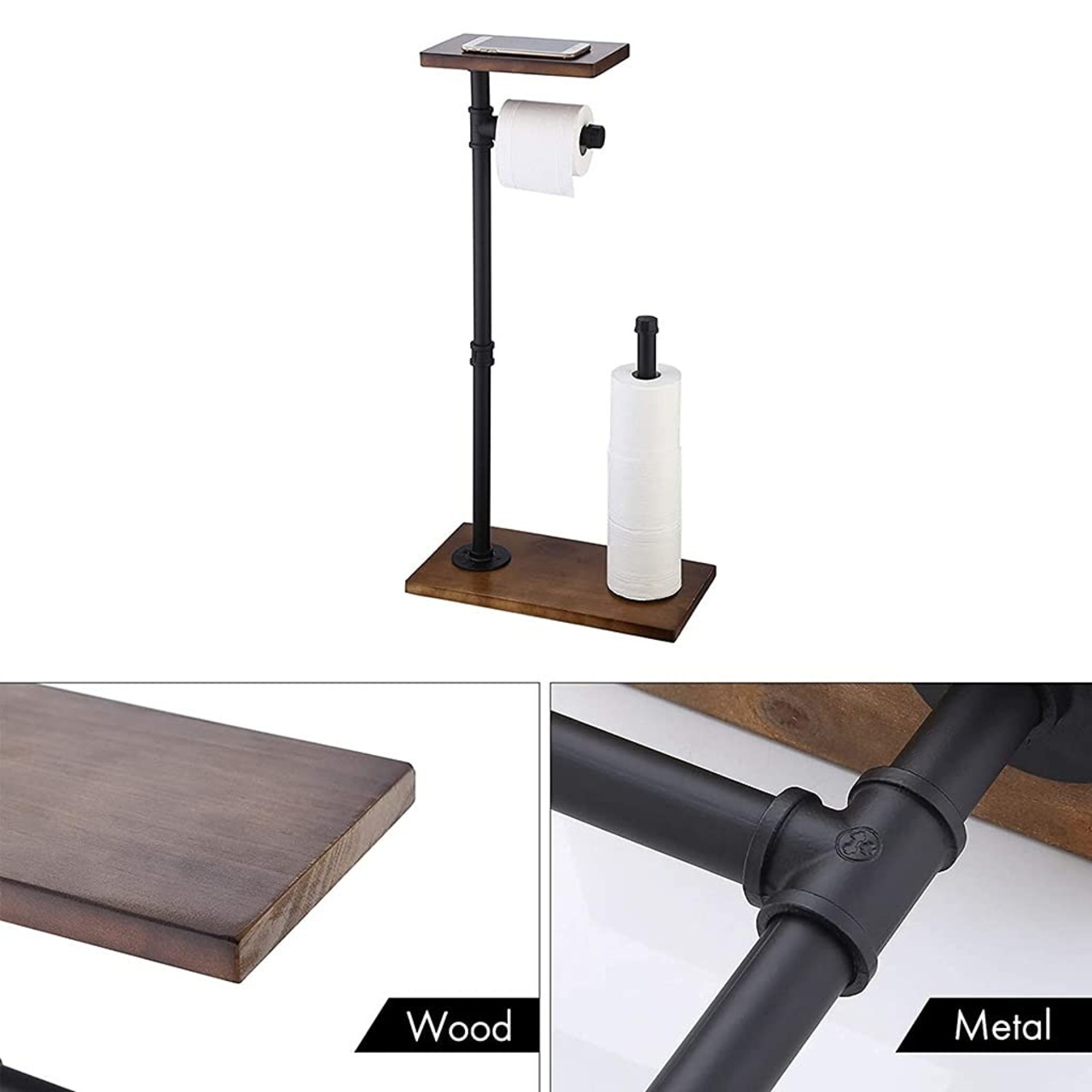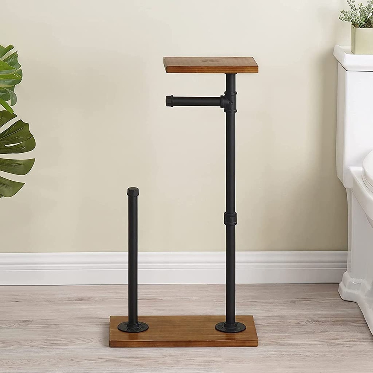 【シンプルで適切】茶色の木材と工業用錬鉄製のパイプでシンプルなデザインのペーパートイレットペーパーホルダーは、現代の家庭の美的センスを高めるだけでなく、どんなデザインやスタイルにも合う楽しい装飾を可能にします。【頑丈な構造】この自立型ティッシュペーパーホルダーは、1ロールを素早く簡単に分配でき、最大4ロールのトイレットペーパーを収納できる予備の収納力があります。 錆びた丈夫なスチールパイプ製。