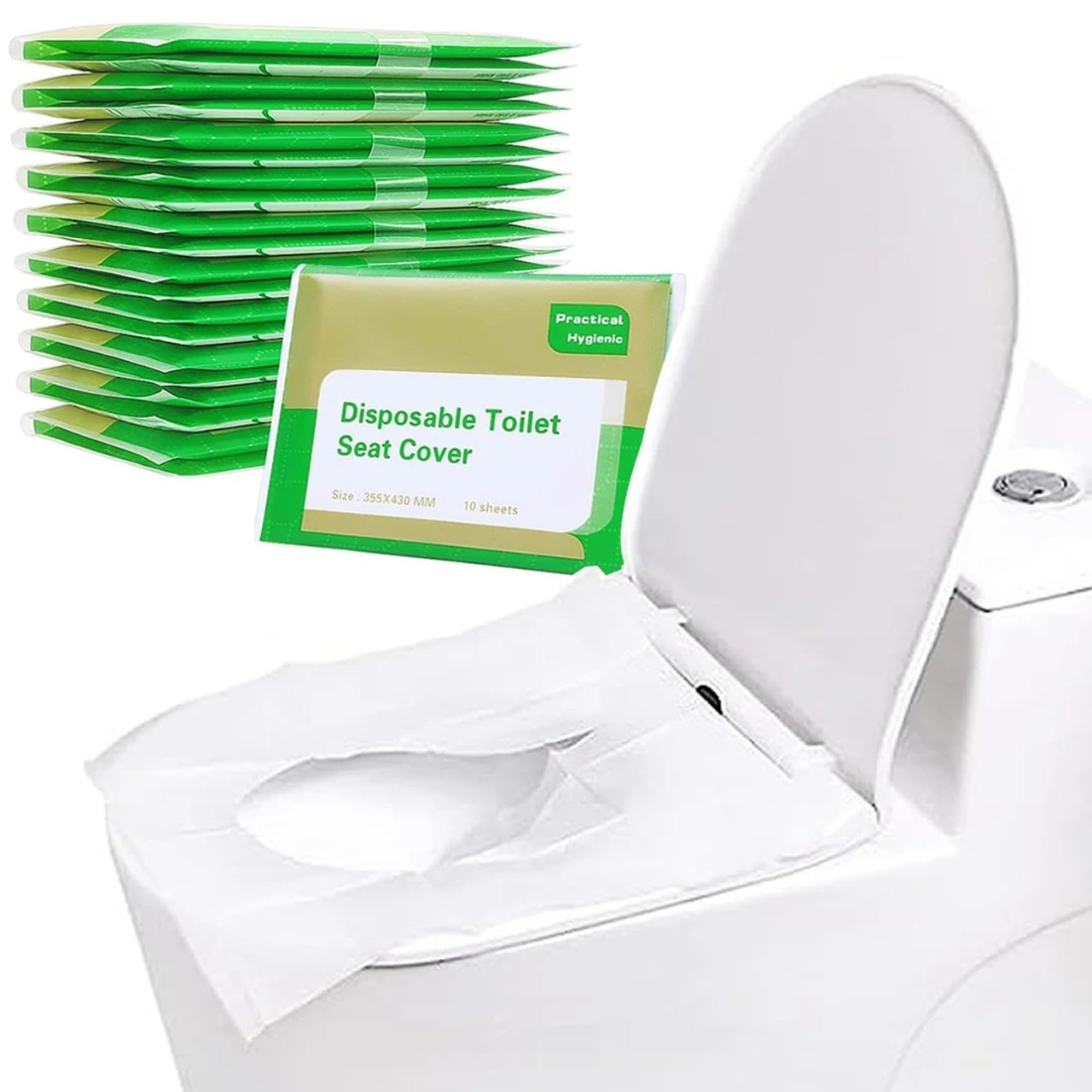 使い捨て便座シート100枚セットです。公衆、共有トイレの不衛生な状態に困惑した経験は誰にでもあると思います。便座シートをポケットティッシュサイズのパックからサッと取り出して便座に広げるだけで衛生的にトイレを利用することができます。使用後は水に流すだけで手間がかかりません。10枚入りパック×10パック(100枚)の大容量でお届けします。