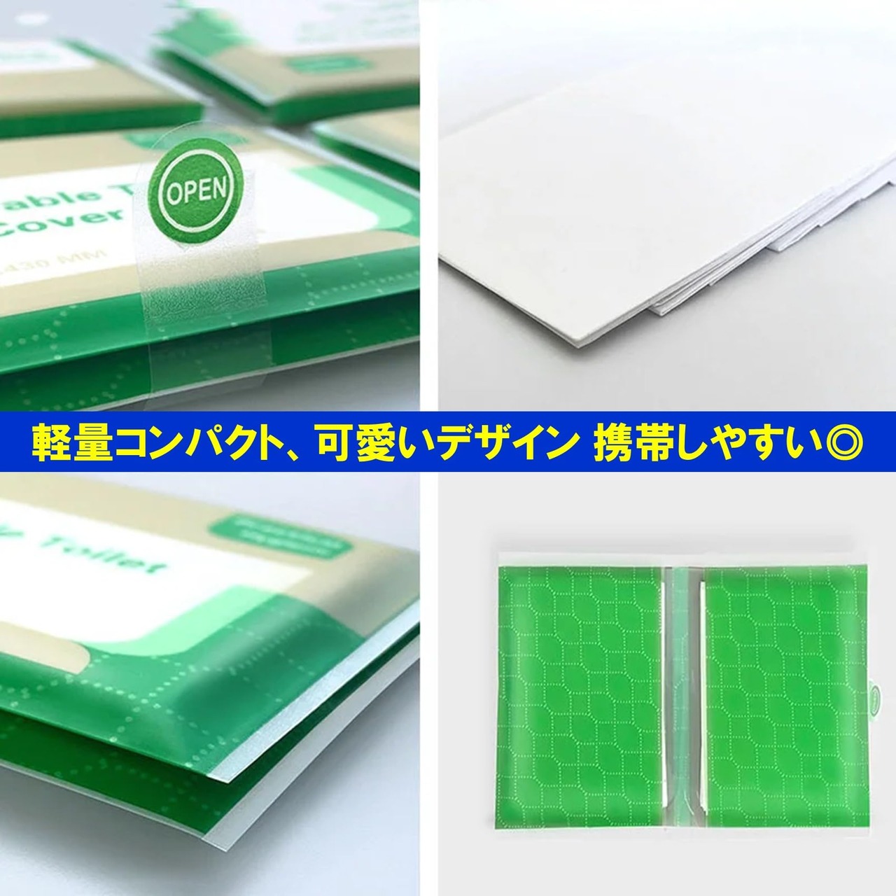 便座シートは1パック10枚入りとなっています。収納パックは115×81mmのポケットティッシュサイズです。軽量コンパクトで持ち運びに便利ですし、グリーンを基調としたデザインがオシャレで可愛らしく携帯しやすいパッケージです。