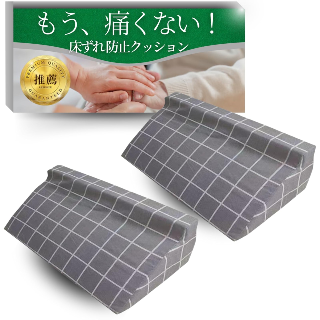 ケアヴィール 介護用クッション 【こだわりの滑り止め加工】 三角クッション 2個セット 床ずれ防止 軽量 カバー取外し 洗濯可能 体位サポート (グレーチェック)