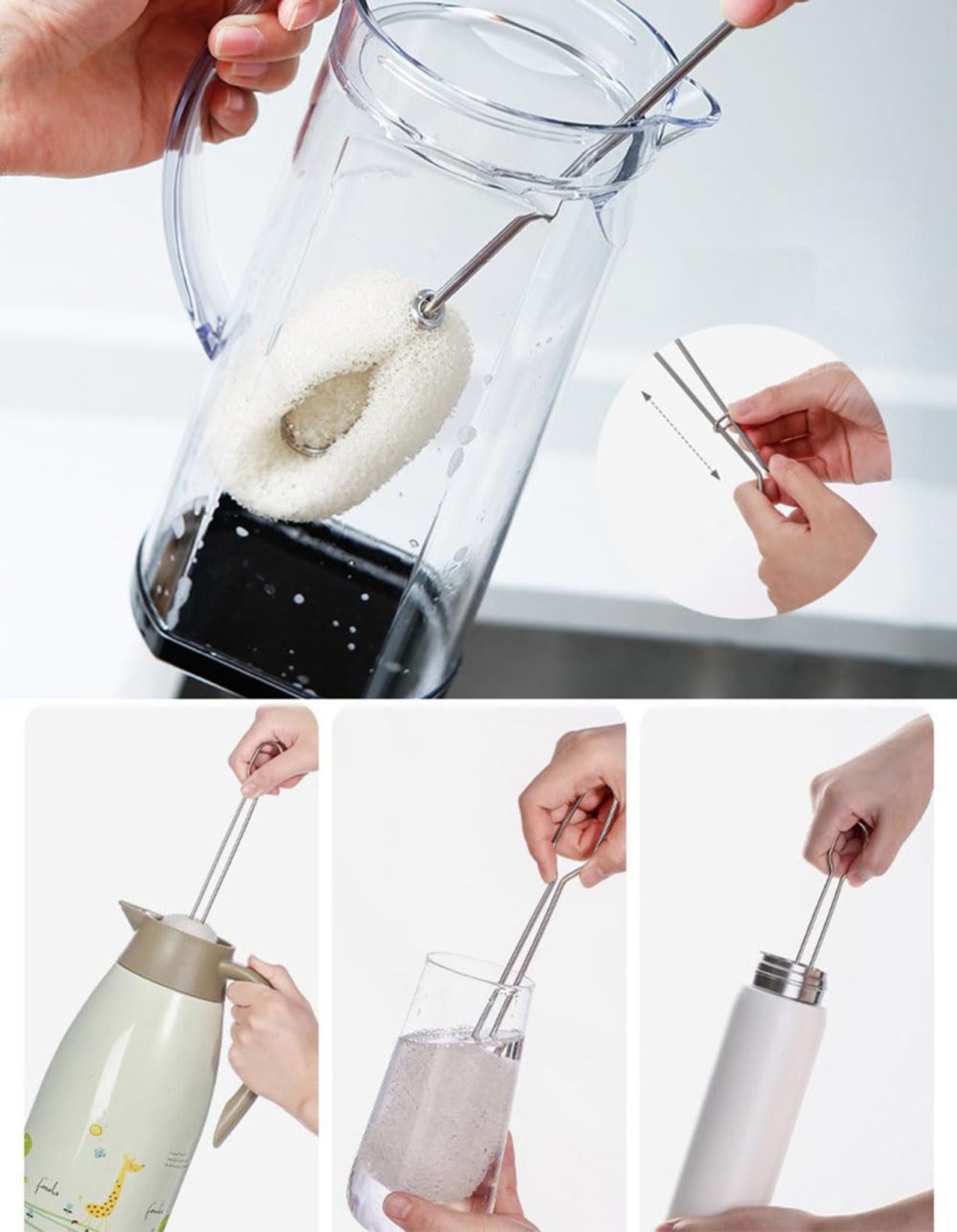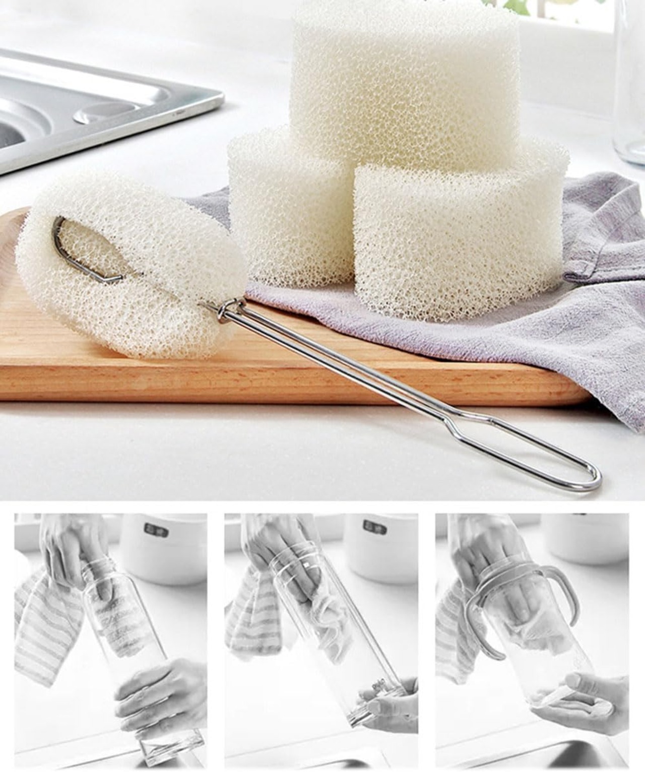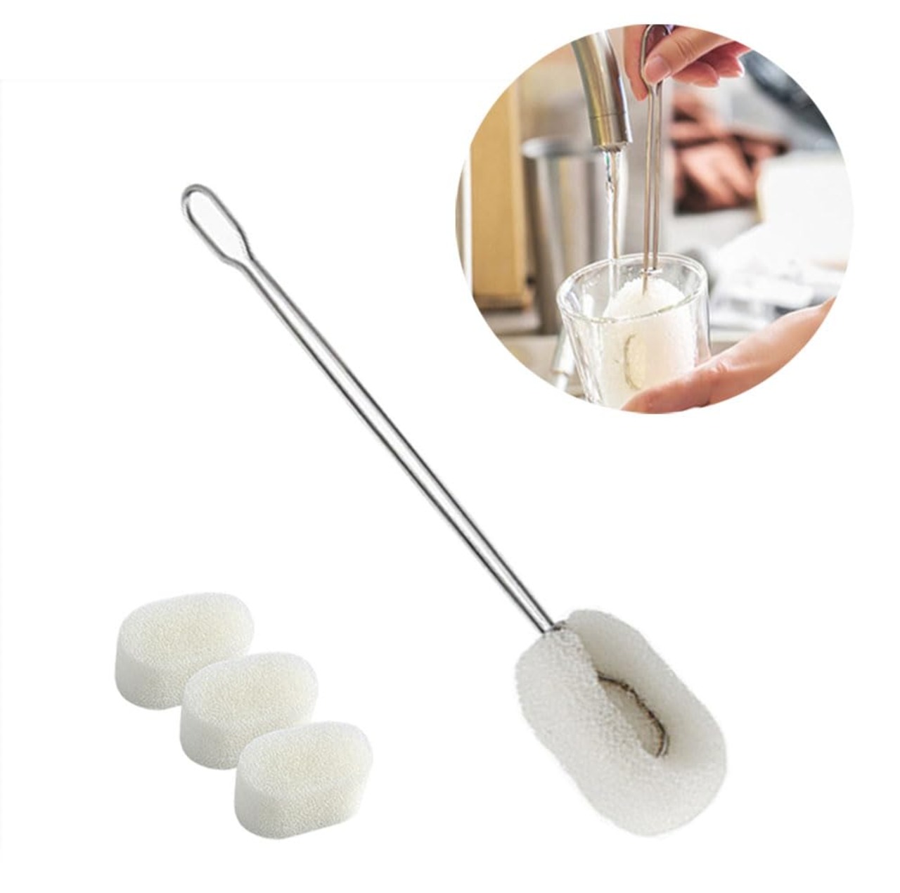 VTEERY(みさ) 【ボトルブラシ1枚+交換用スポンジ3枚】 ステンレス鋼 柄付き