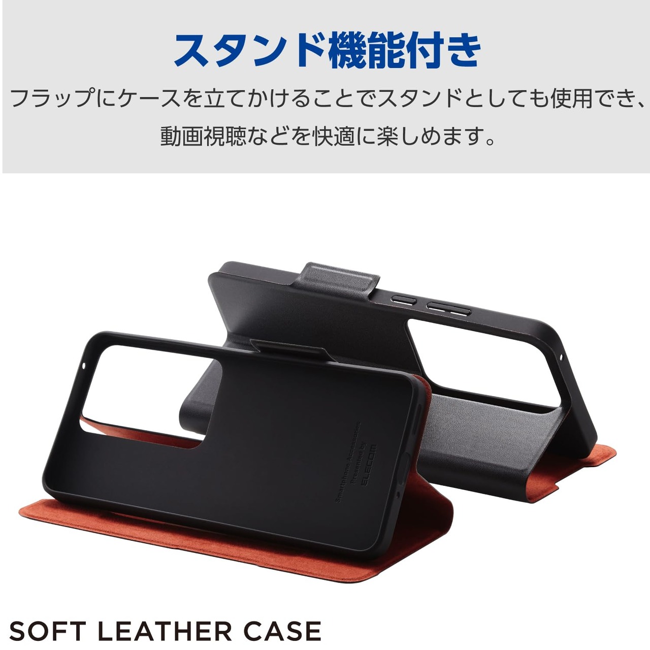 端末の薄さや軽さを損ねない、薄型・超軽量なウルトラスリムタイプのソフトレザーケース(手帳型)です。