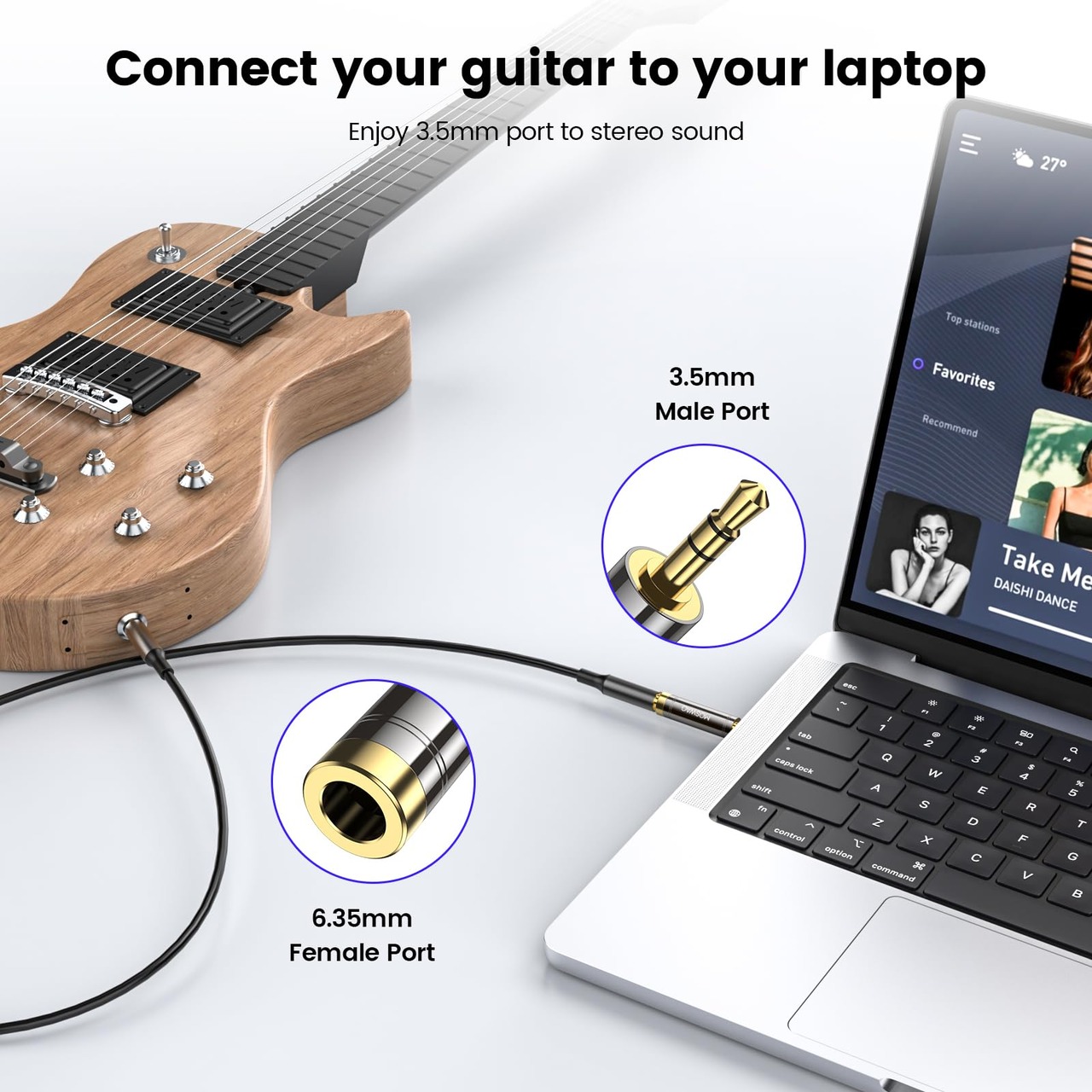 【ロスレス音質変換】3.5 mm~6.35アダプタ。最新の設計と高価な材料を採用し、オーディオデータの変換をよりロスレスでより良くすることができ、スムーズで遅延のない体験を提供することができます。