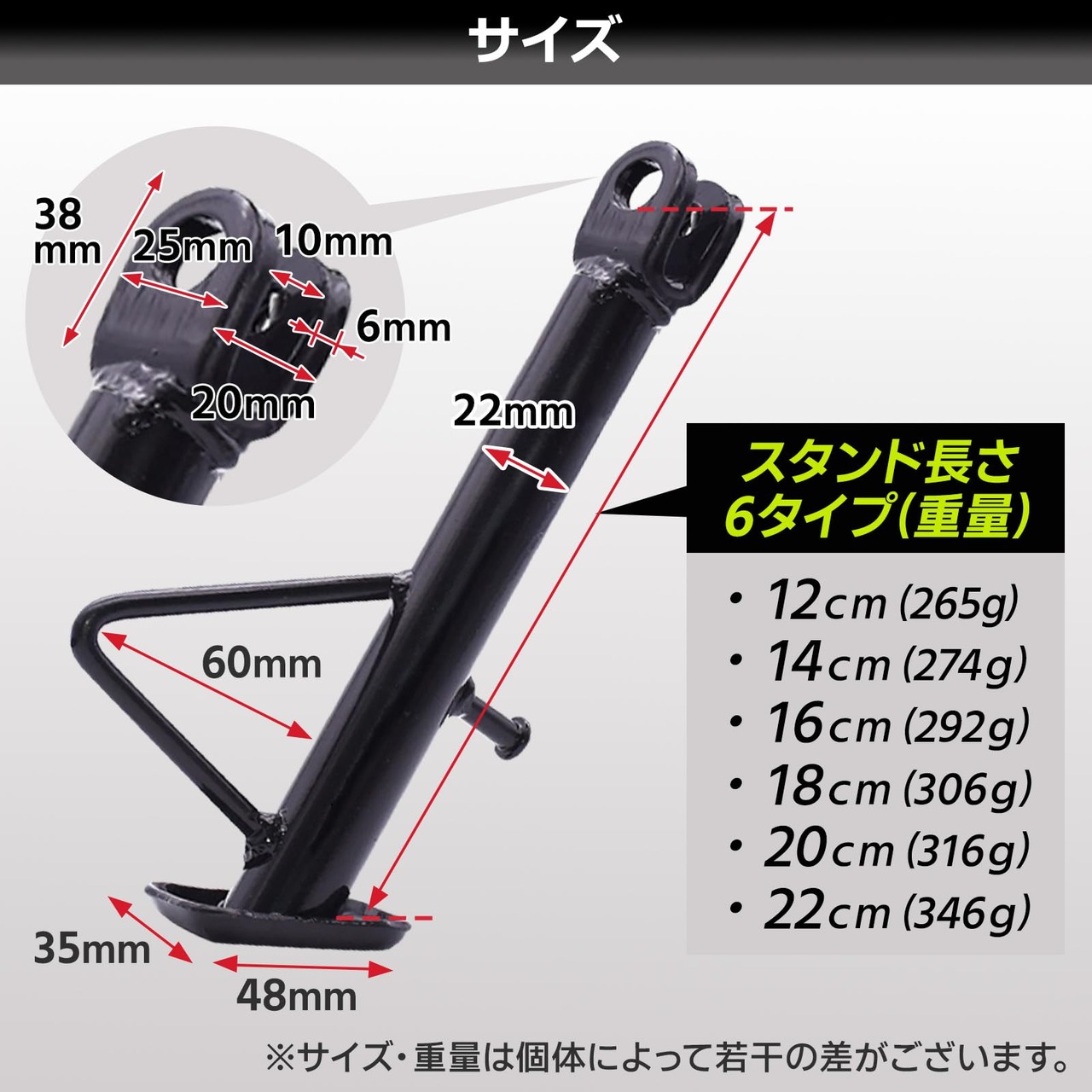 UB-Lab. バイク 用 サイド スタンド 原付 アシスト フック キック スタンド 転倒 防止 ボルト バネ 付 (ブラック) 20cm 200mm