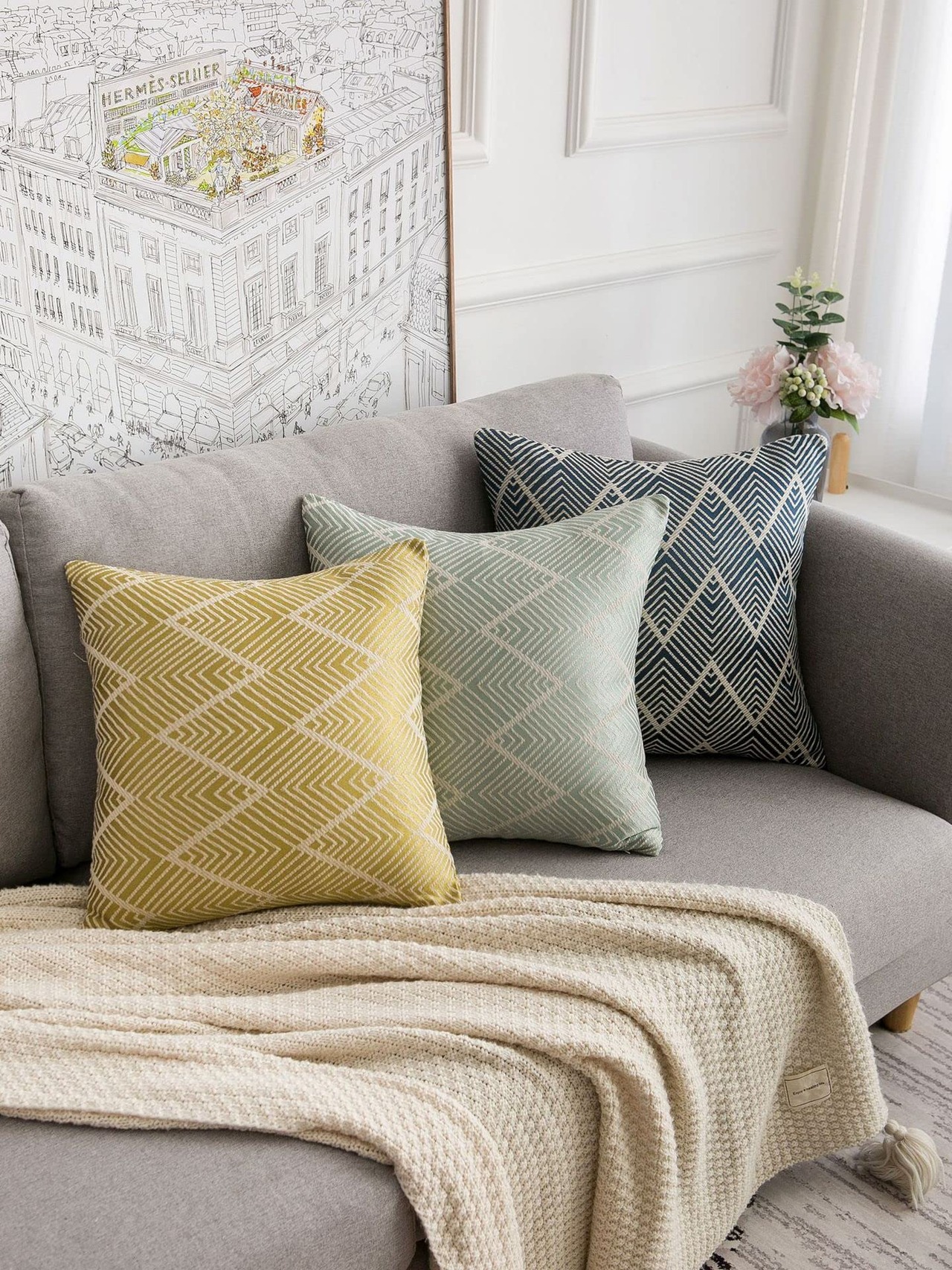 クッションカバー 30x50cm 2枚セット 綿麻 波浪柄 幾何学模様 ジャガード 北欧 可愛い おしゃれ ナチュラル ファスナー モダン 家庭装飾 車 飾り 四季通用 インテリア ベッドルーム ソファー用クッションカバー ヌードクッションかばー くっしょんかばー 装飾枕カバー 座布団かばー 枕カバー ピローケース 抱き枕カバー (30x50, イエロー)