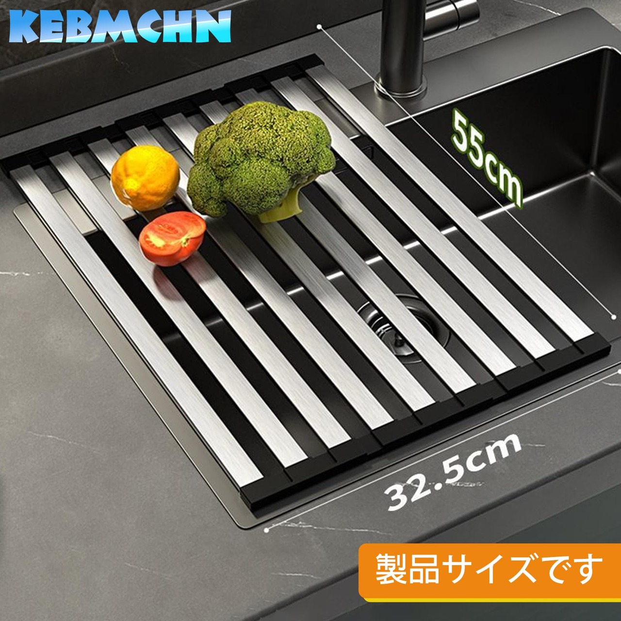 食器水切りラック 55CM、シンク上 収納 、 板 流し台 水切り、キッチン 収納 折り畳みステンレス製 、 調理スペース 拡張 、 シンク作業台水切りラック 接触面積アップ 安定性大幅向上 錆びにくい お手入れ簡単 耐熱性(55CM)