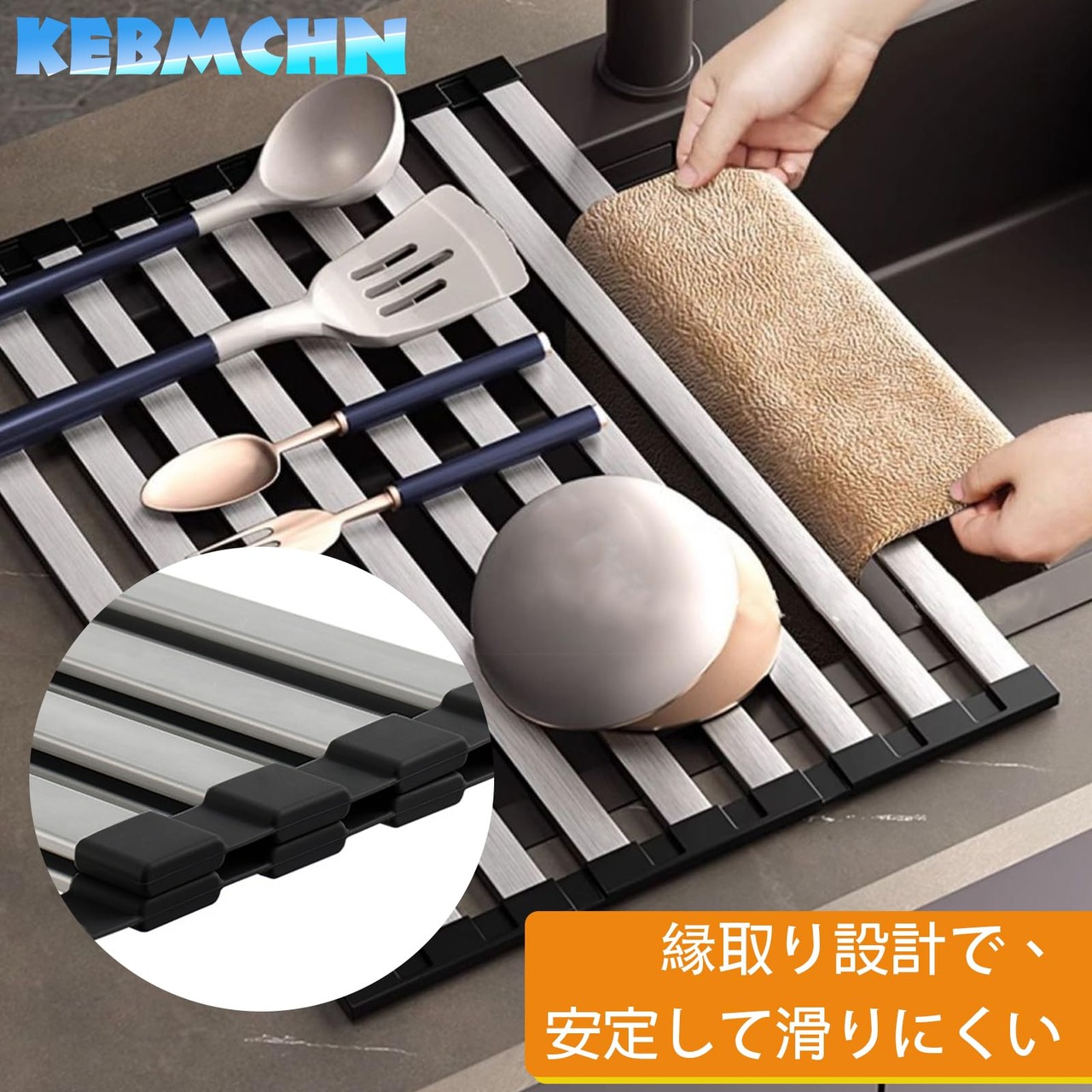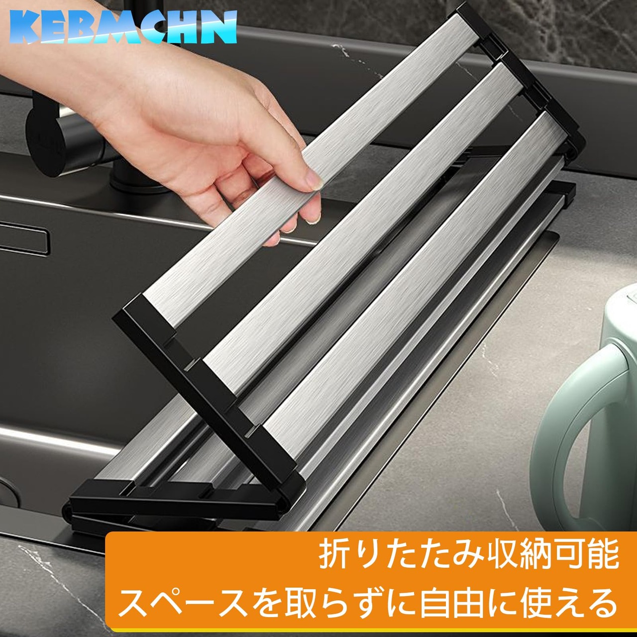 【高品質の素材】:この折りたたみ式水切りラックは、耐久性と耐荷重性に優れた304ステンレス鋼を使用。錆びにくく、高温にも強いため、熱い鍋を置く断熱マットとしても活用できます。お手入れは簡単で、湿った布で拭くだけで清潔を保てます。
