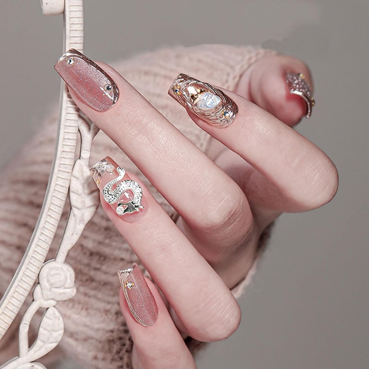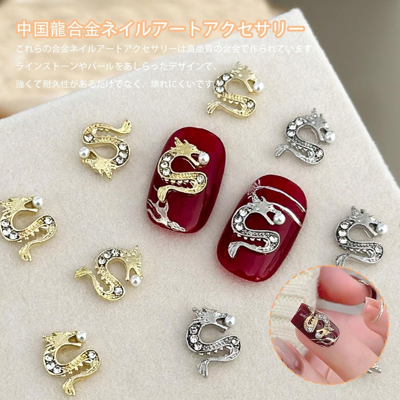 【素材】合金製のドラゴンネイルパーツは錆びにくく、耐久性があります。色褪せにくく、優れた質感と光沢を持ち、ネイルをよりエレガントで可愛く飾ります。