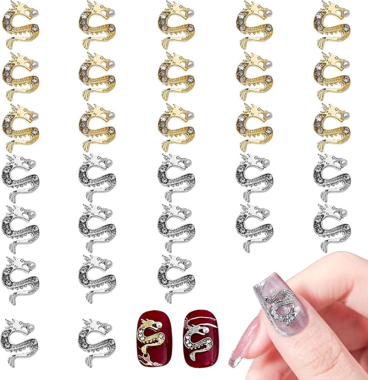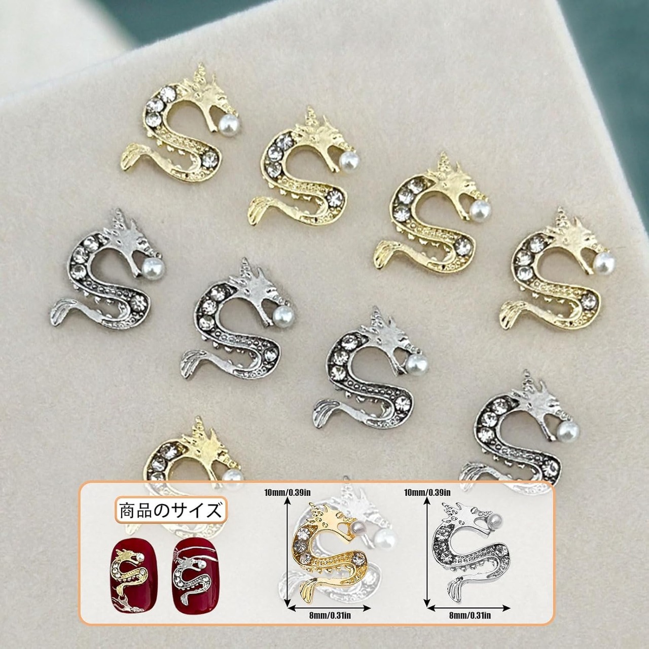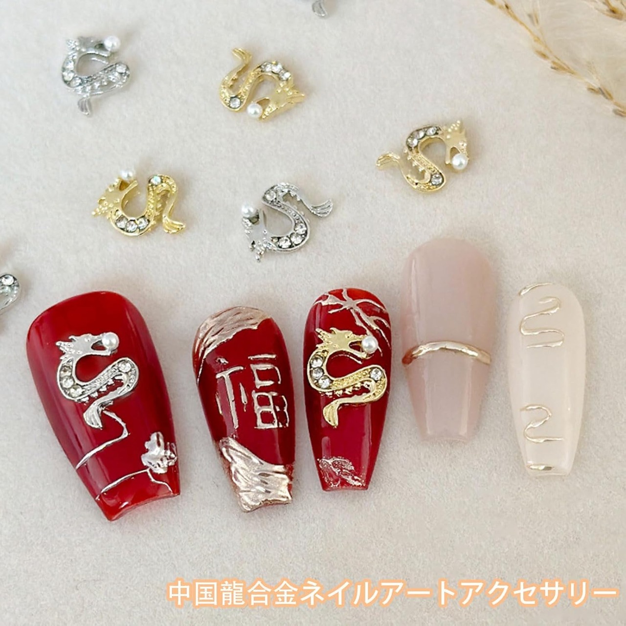 【龍のネイルパーツ】おしゃれな干支辰のネイルパーツです。シルバーとゴールドをご用意して、ネイルのワンポイントにぴったりです。