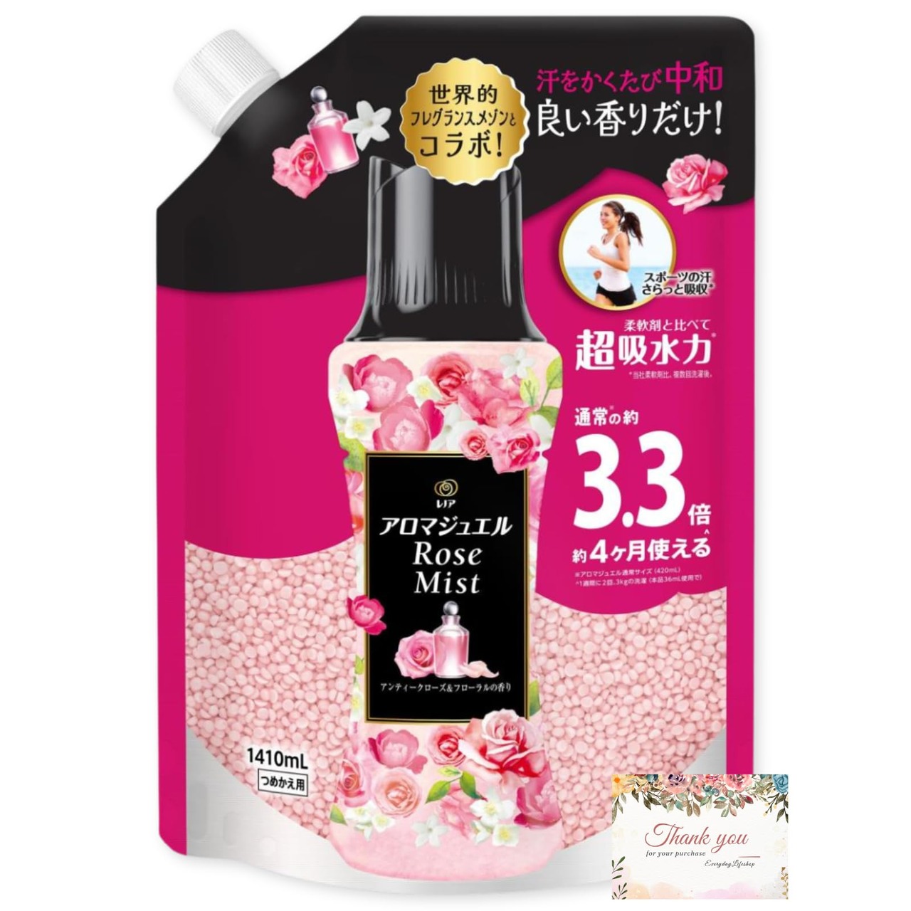 レノア アロマジュエル ビーズ 詰め替え アンティークローズ&フローラル 1410ml オリジナルカード付き 大容量