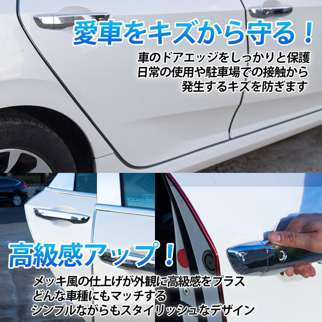 【キズ防止・ドア保護】このドアモールは、車のドアエッジをしっかりと保護し、日常の使用や駐車場での接触から発生するキズを防ぎます。傷やへこみを防ぎます。これにより、車の外観を長期間美しく保つことができます。