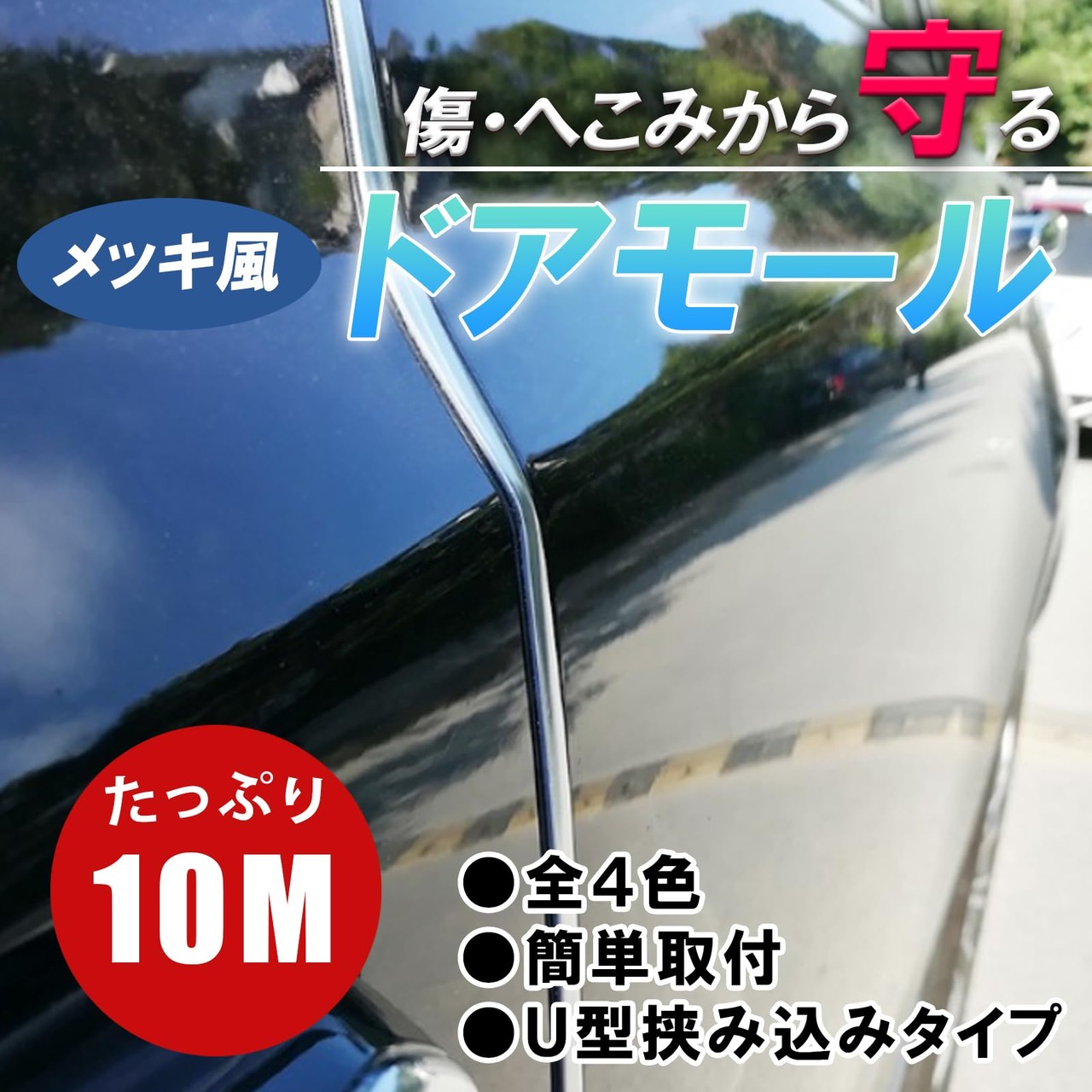 【キズ防止・ドア保護】このドアモールは、車のドアエッジをしっかりと保護し、日常の使用や駐車場での接触から発生するキズを防ぎます。傷やへこみを防ぎます。これにより、車の外観を長期間美しく保つことができます。【簡単装着】U型デザインで、両面テープで簡単装着が可能です(洗浄、脱脂後に取付をお願い致します)どの車種にも簡単に取り付け可能です。特別な工具や専門知識が不要で、誰でも手軽に取り付けられるため、時間と手間を大幅に節約できます。 【高級感アップ】メッキ風の仕上げが、車の外観に高級感をプラスします。シンプルながらもスタイリッシュなデザインで、どんな車種にもマッチしドレスアップ効果があり、車全体の印象を一新します。 【カラー・サイズ・耐久性】シルバー・光沢ブラック・カーボン調・レッドをご用意、お好みでお選びください。幅約6㎜長さ10Mの長さでドアエッジだけでなく、トランクやボンネットなど、さまざまな部分に使用可能です。高品質な素材を使用しているため、紫外線や雨風にも強く、長期間の使用でも劣化しにくいです。これにより、頻繁な交換の手間を省くことができます。 【注意事項】取り扱い説明書はありません。適合確認のサポートは行っておりません。画像及び寸法をご参考にご判断ください。※海外生産品の為、製造上のバリ、若干の色ムラ、輸送時の小傷等が発生する場合がございます。またモニター環境により実際の色と違って見える場合がございます事、予めご了承の上ご購入下さいませ。