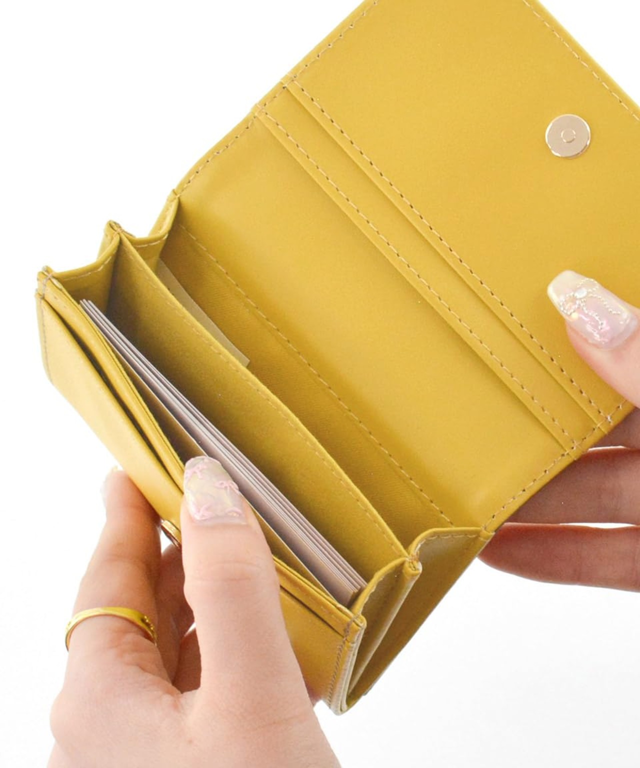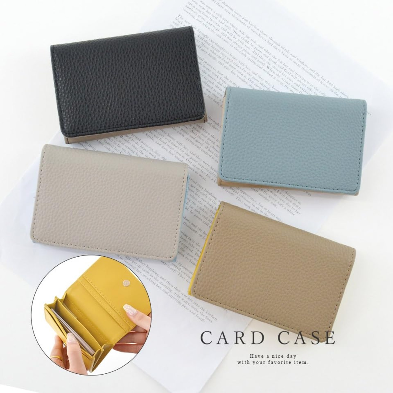 【サイズ】横幅:11cm 高さ:7.5cm マチ:2cm <br><br>【素材】合成皮革<br>【仕様】開閉:マグネットボタン内側:カードポケット×3外側:-<br>【重さ】約50g<br>・シボ感が高見えする名刺入れ。<br>・シンプルな中に遊び心のあるバイカラーデザイン。<br>・開閉はマグネットボタンになっており、バッグの中でも開かず安心♪<br>・メイン収納には仕切りが付いており、名刺を分けて収納することが可能!<br>・カードポケットも3つ付いています。<br>・幅広い世代でお使いいただけます。<br>・名刺入れとしてはもちろん、カードケースとしても◎