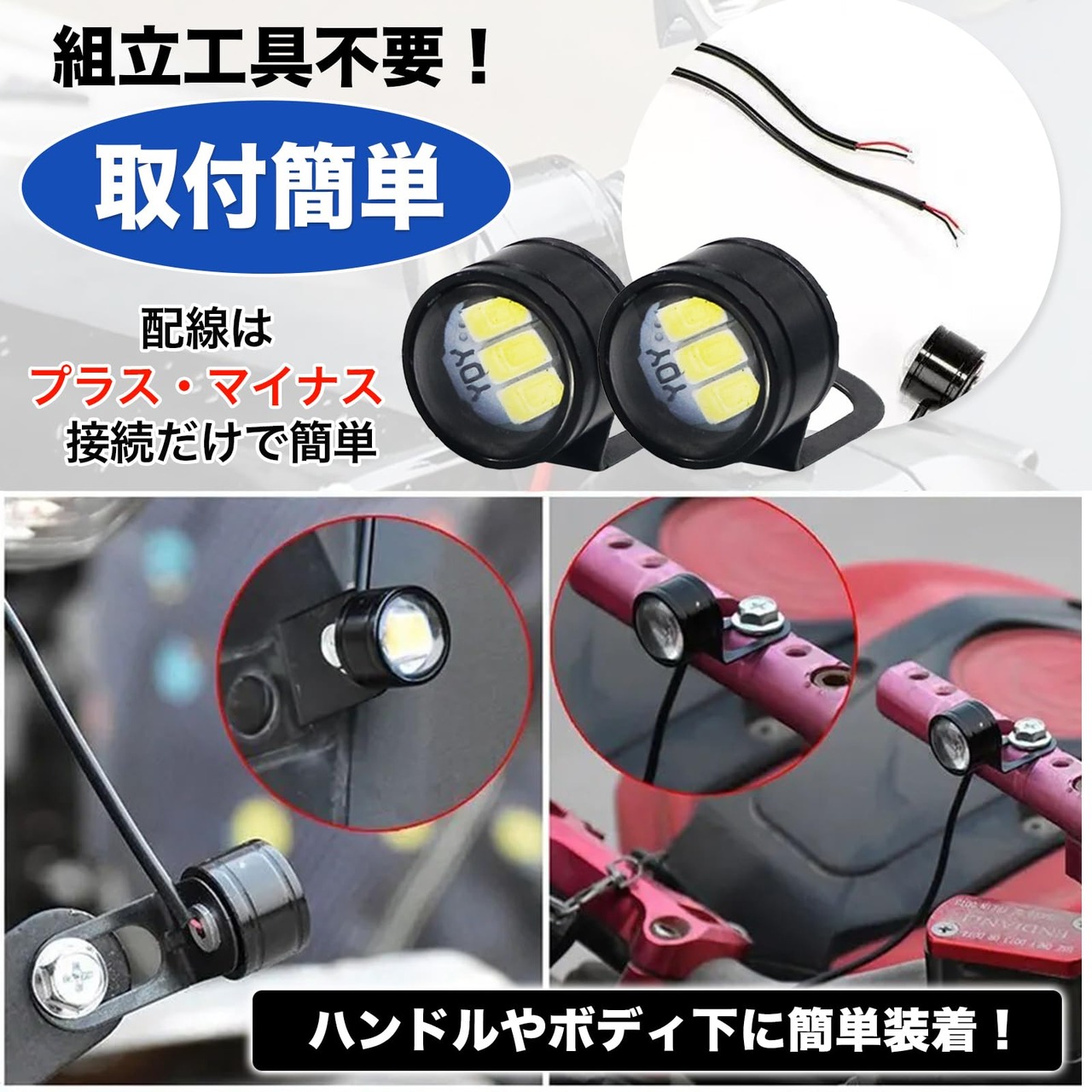 MONOSTORE ストロボ ライト 自転車 バイク フラッシュ ランプ デイライト スクーター オートバイ 自動車 パーツ 点滅 汎用 ホワイト