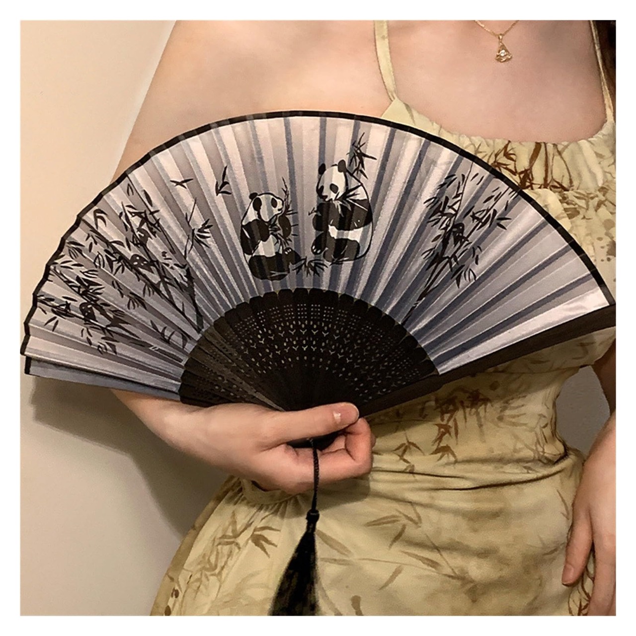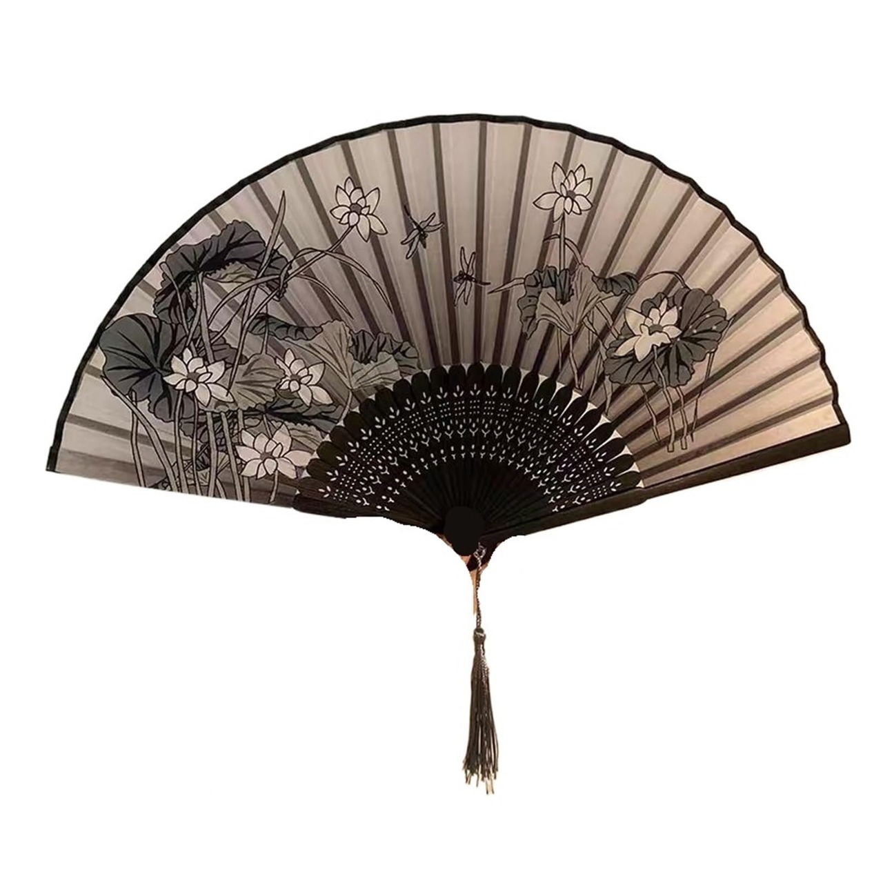 YAOSHERO 新中国風水墨画扇、古代風扇子、竹扇、かっこいい扇子、扇子、ダンス、ギフト(インクロータス)