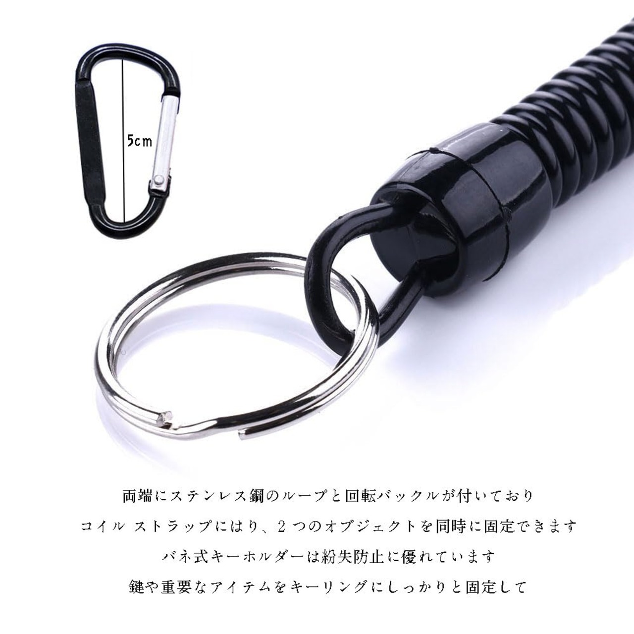 【紛失防止構造】鍵や重要なアイテムをキーリングにしっかりと固定して、バネ式キーホルダーは紛失防止に優れています。形状は小さく、軽量で持ち運び可能で、アイテムの安全を確保できます。