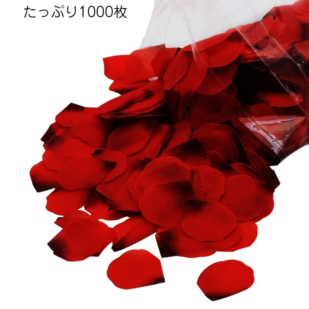 1000枚セット 花びら バラ 薔薇 桜吹雪 飾り 造花 プロポーズ 記念日 誕生日 ロマンチックな夜 バレンタインデー ホームパーテ 結婚式の花 撮影 演出にローズ お祝い (ダークレッド)
