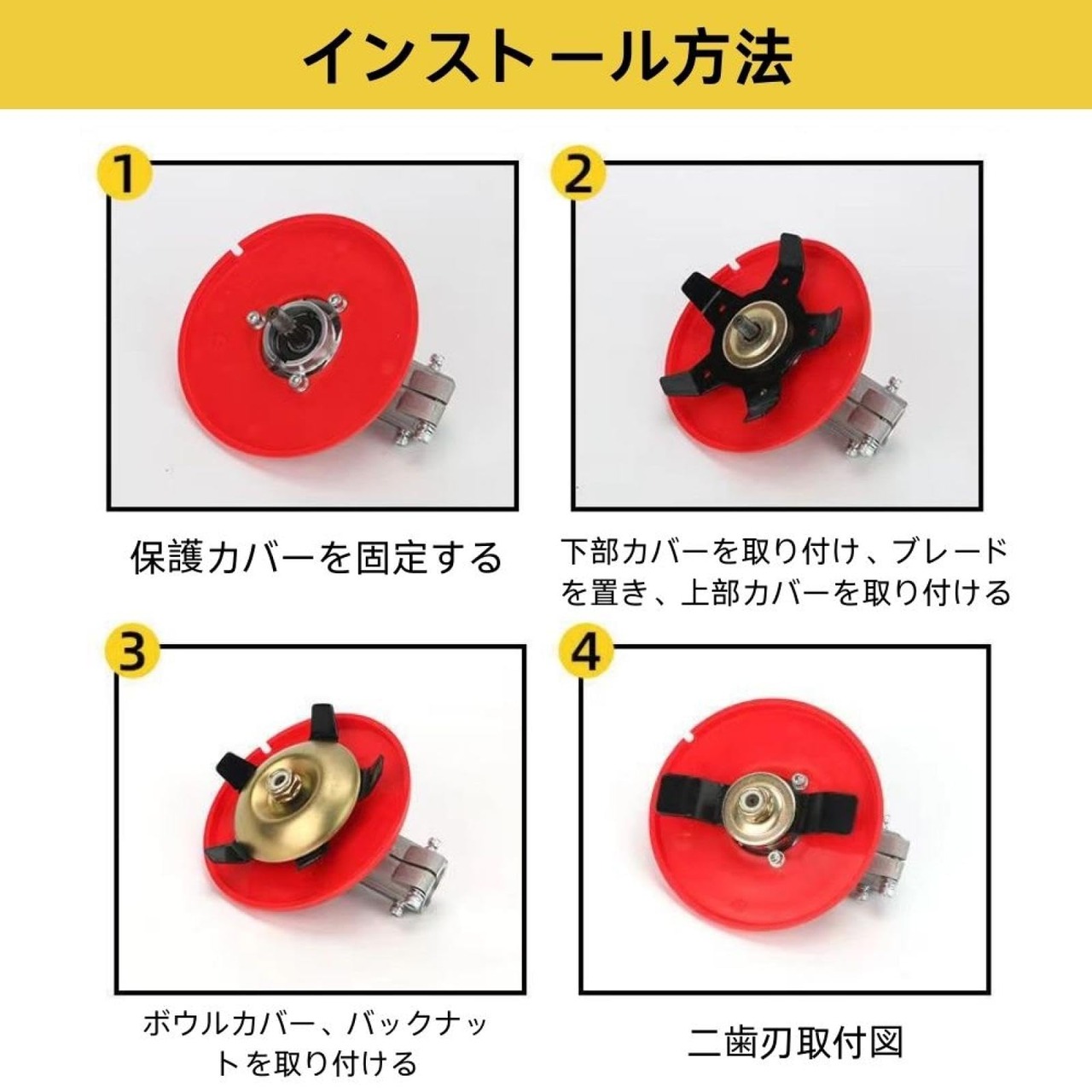 名前:多機能トリムヘッド<br>材質:ABS+鉄<br>仕様:五歯刃、二歯刃<br>色:赤<br>アフターサービス:<br>私たちは最高のサービスと良いショッピング体験を提供することに力を入れています。買い物中に何か問題が発生した場合は、いつでもEメールを送信してください。私たちは全力を尽くしてこの問題を解決します。<br>