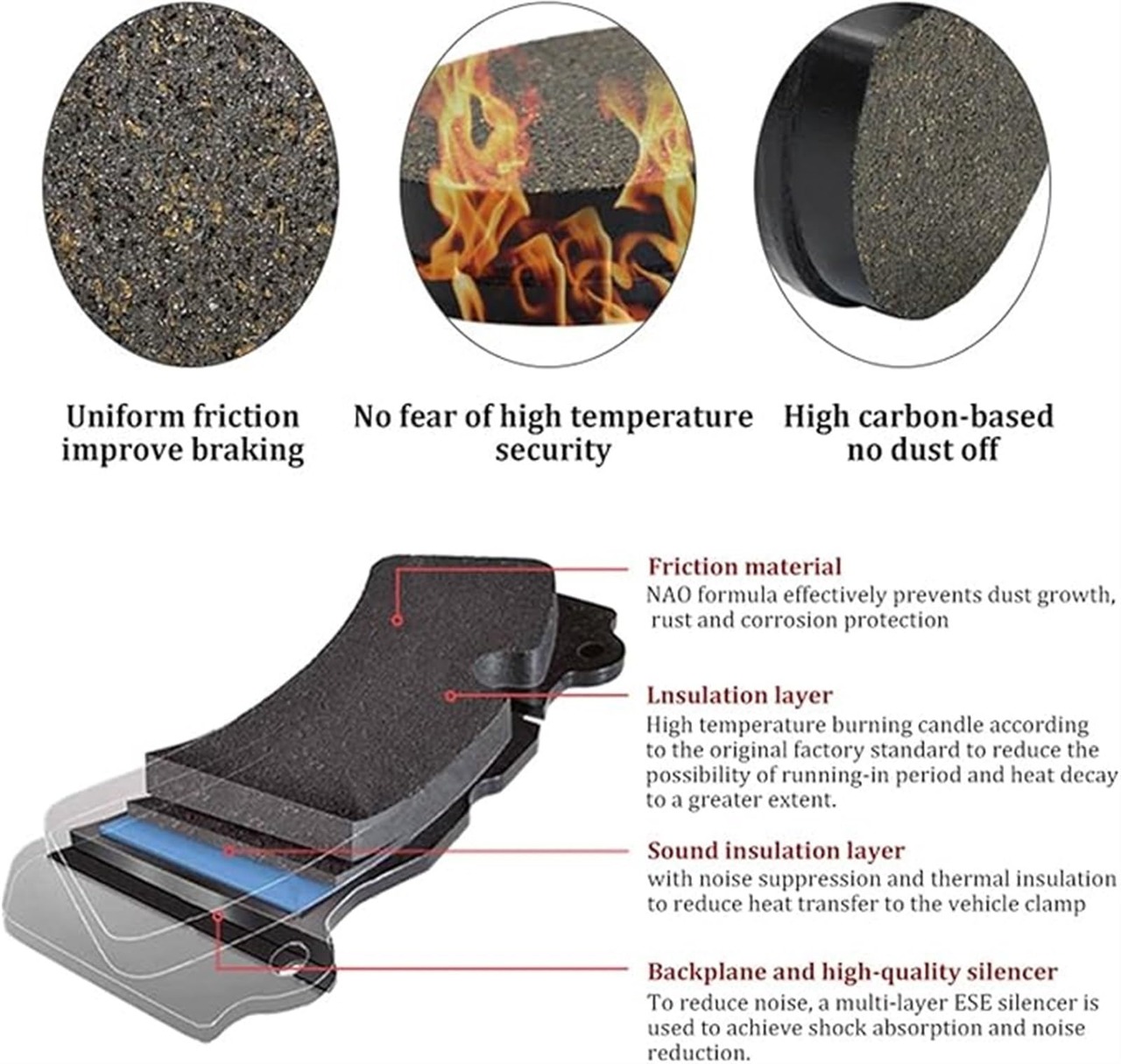 ブレーキフェードが最小限: ブレーキパッドはブレーキフェードに抵抗し、高温条件下でも効果を維持します。