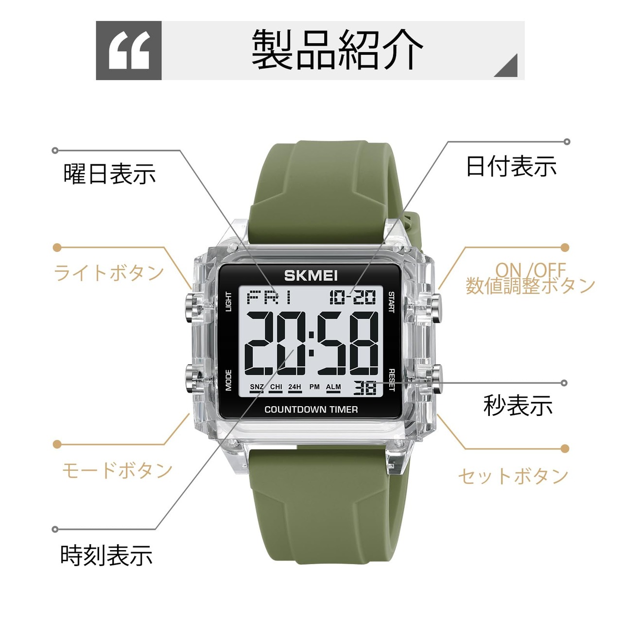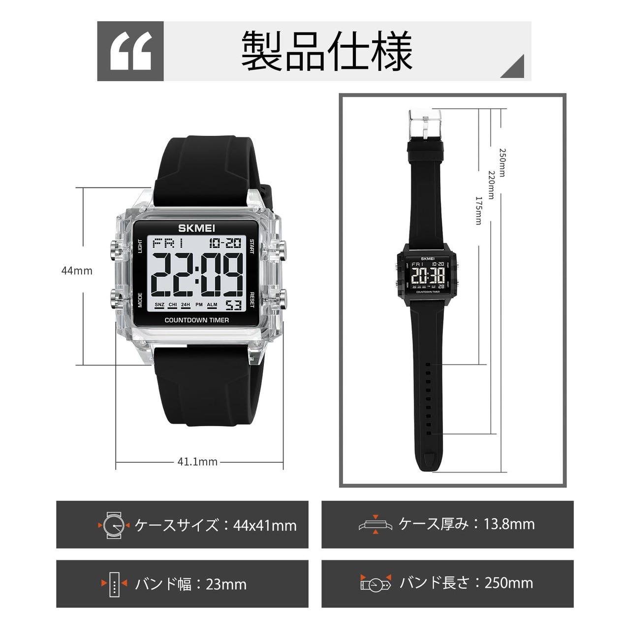 Datirzyx(ダティアシー)大文字 デジタル腕時計 メンズ 夜でも見やすい時計 多機能ウォッチ 四角形 スポーツウォッチ 防水うで時計 仕事時計 led watch 日本電池採用 日本語説明書付 (ホワイト+ホワイト)