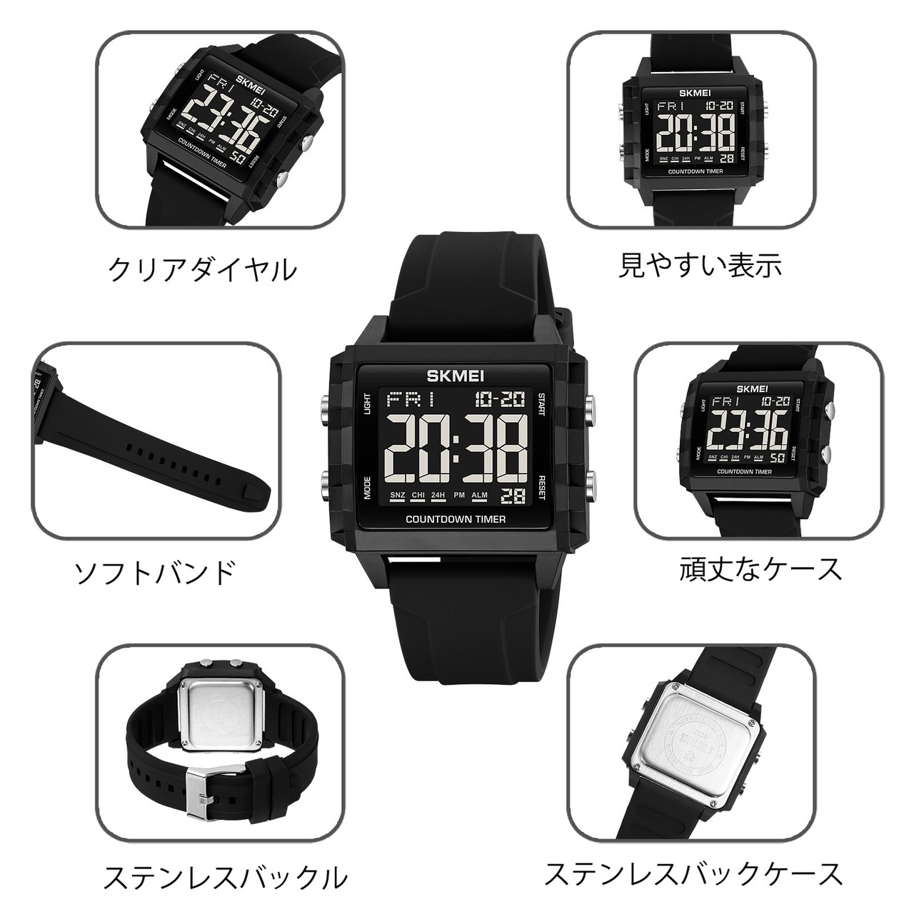 【メンズ腕時計の特徴】大文字表示なので老眼でも時間を確認しやすい!ELバックライト付きなので暗いところでもよく見える!柔らかいPUバンドが付け心がよい!見た目がかっこよくおしゃれで存在感を強く感じさせます!ケースとバックルはステンレスで造られ、衝撃に強く長く使用できる