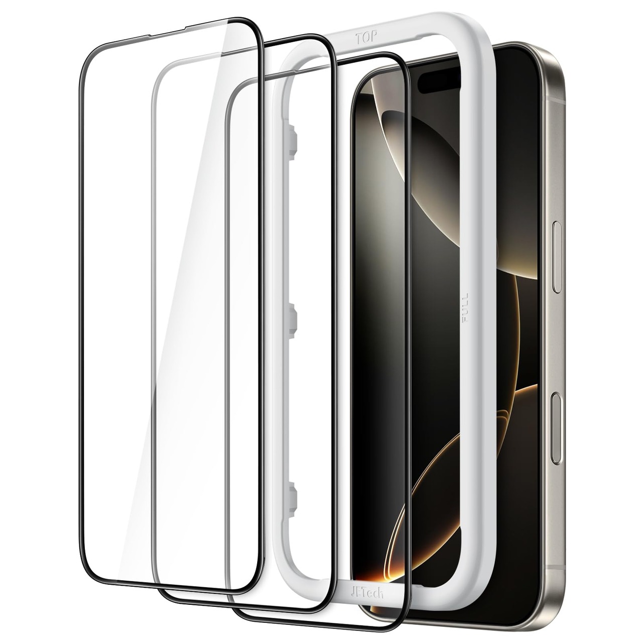 JETech iPhone 17 / iPhone 16 Pro 6.3インチ用 全面保護フィルム 黒縁 強化ガラス製 ガイド枠付き ケースに干渉なし HDクリア 3枚セット