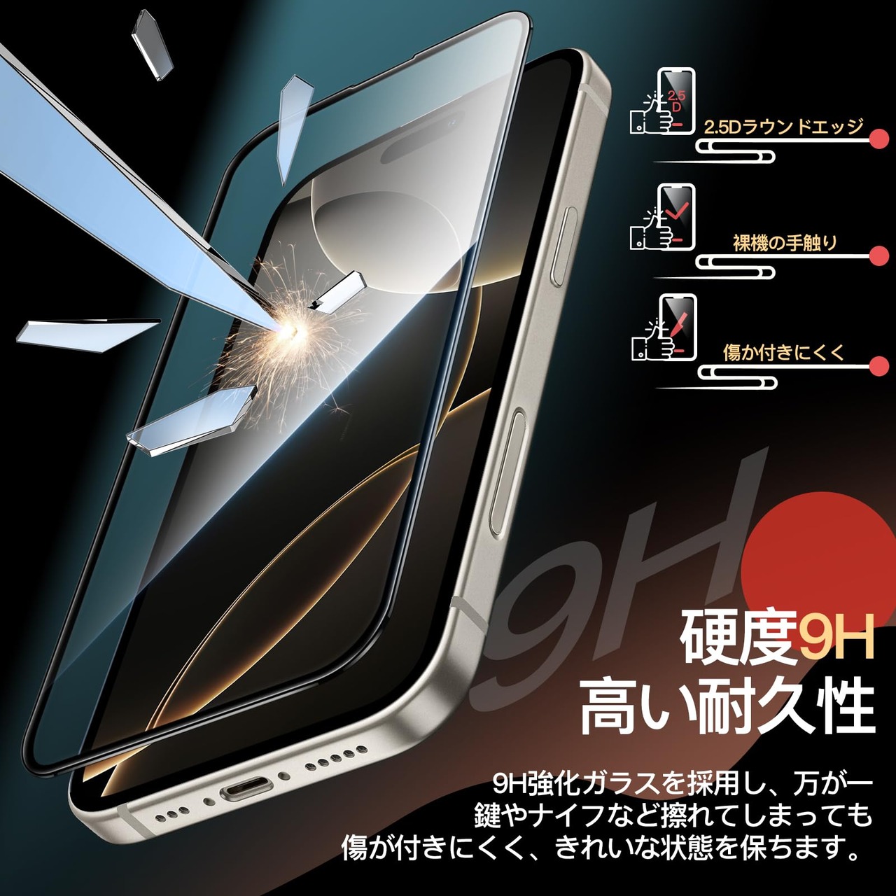 [優れた強化ガラス] 最大9H(ナイフよりも硬い)の傷や摩耗から画面を高度に保護します。疎油性コーティングにより、画面に指紋や油汚れが付きません
