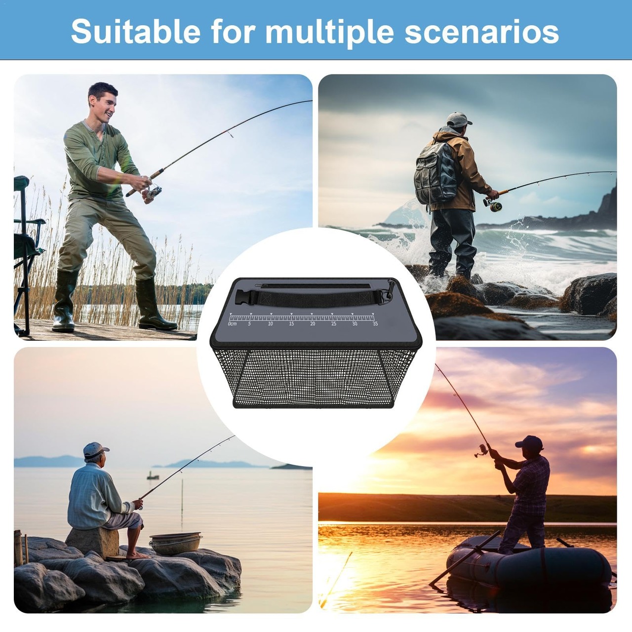 浮遊魚バスケット、釣った魚用の魚バスケット - 生魚用フィッシュバスケット折りたたみ式フィッシングホルダー - ポータブル&速乾性、適用しやすい四角い魚バスケット、岩やドックの釣り、リーチ、その他の餌用。