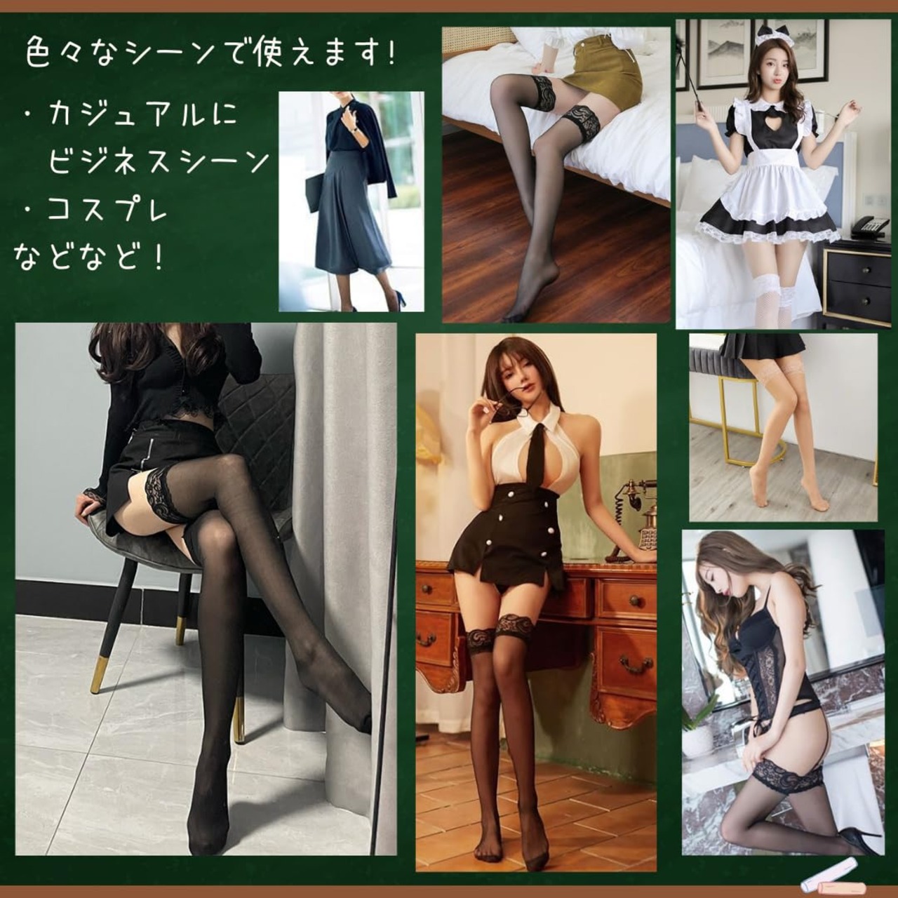 ③使い勝手抜群 / 滑り止めのシリコンストッパー付きなので、ガーターベルト要らず。かる~く透ける感じがさらなる魅力を引き立てます! ※シリコンがお肌に合わない方やお肌が弱い方は長時間のご使用にご注意ください。