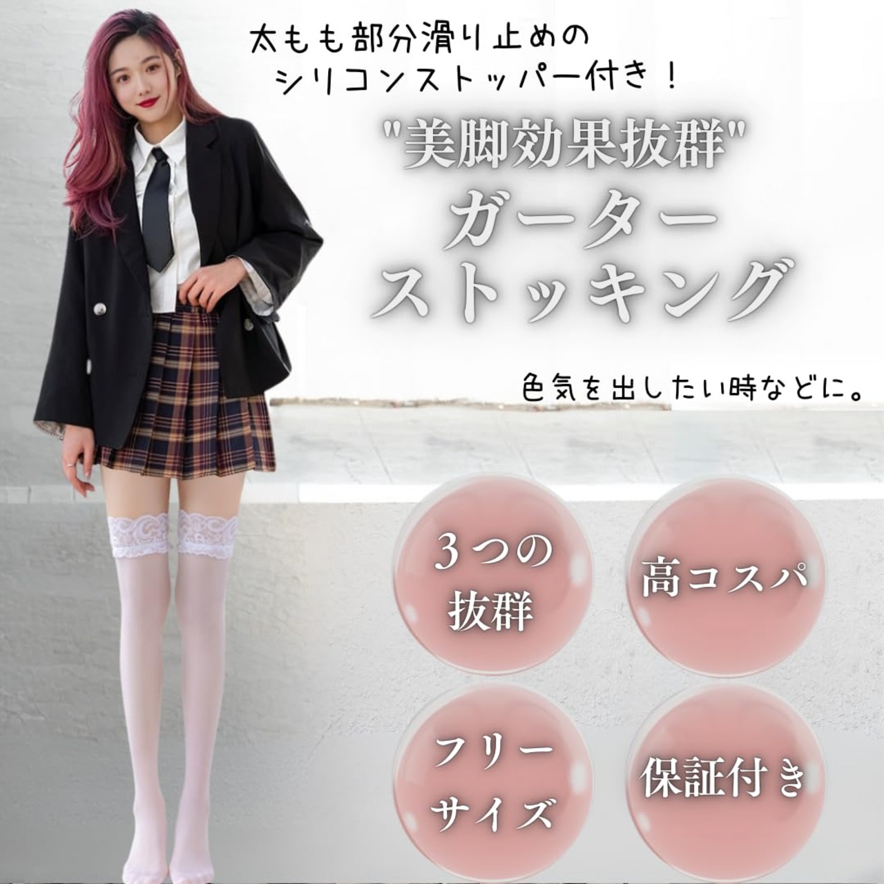【選ばれる理由は3つの抜群】①美脚・脚長効果抜群 / 女子に嬉しい美脚効果を存分に発揮できるガーターストッキングです。20デニールと程よい透け感はフォーマルでも使用できます。そして美脚・足長効果が抜群です。!普段使いからコスプレなどにも使える万能アイテム!