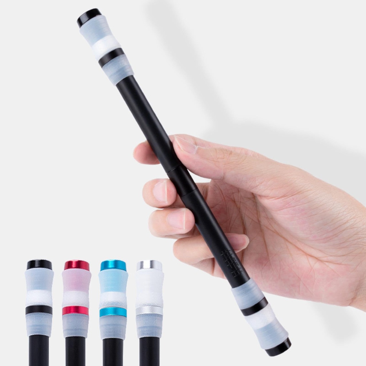 学生コンペティション専用回転ペン、初心者用、クール&ドロップ耐性シリコン回転ペン-ブラックシルバー