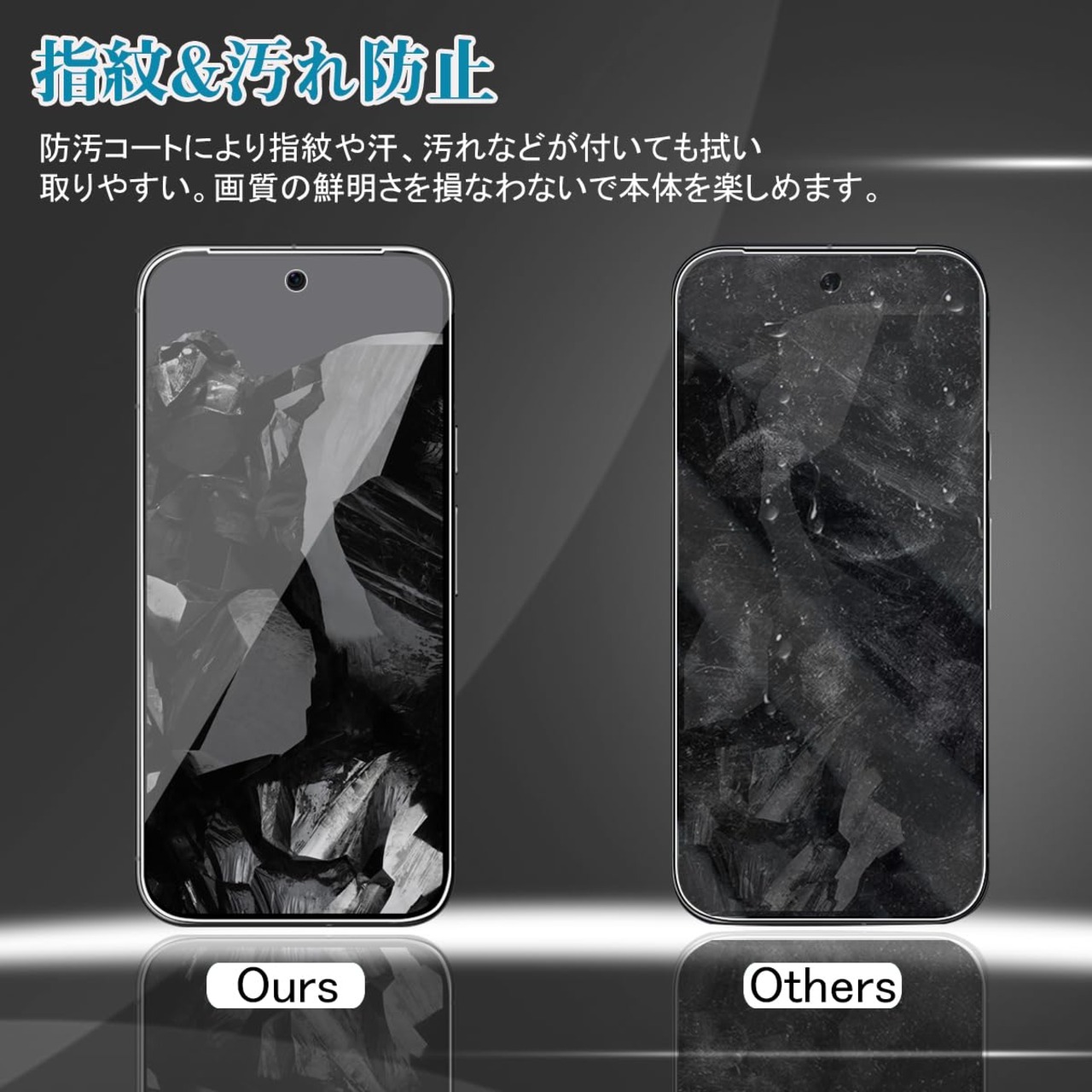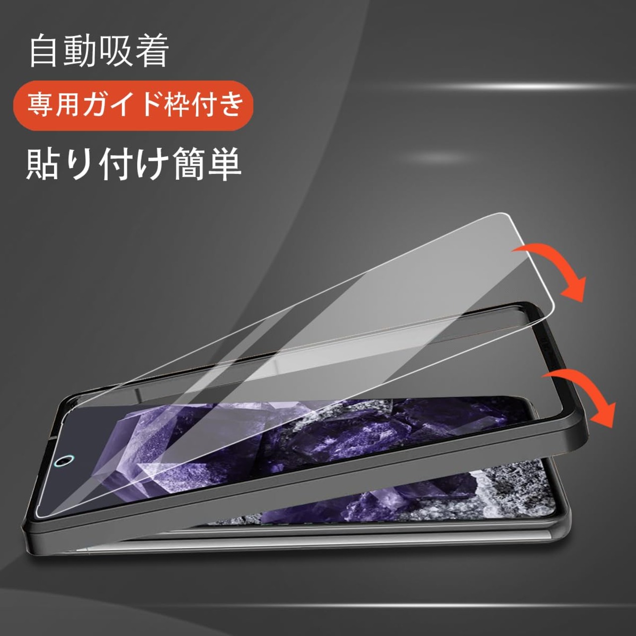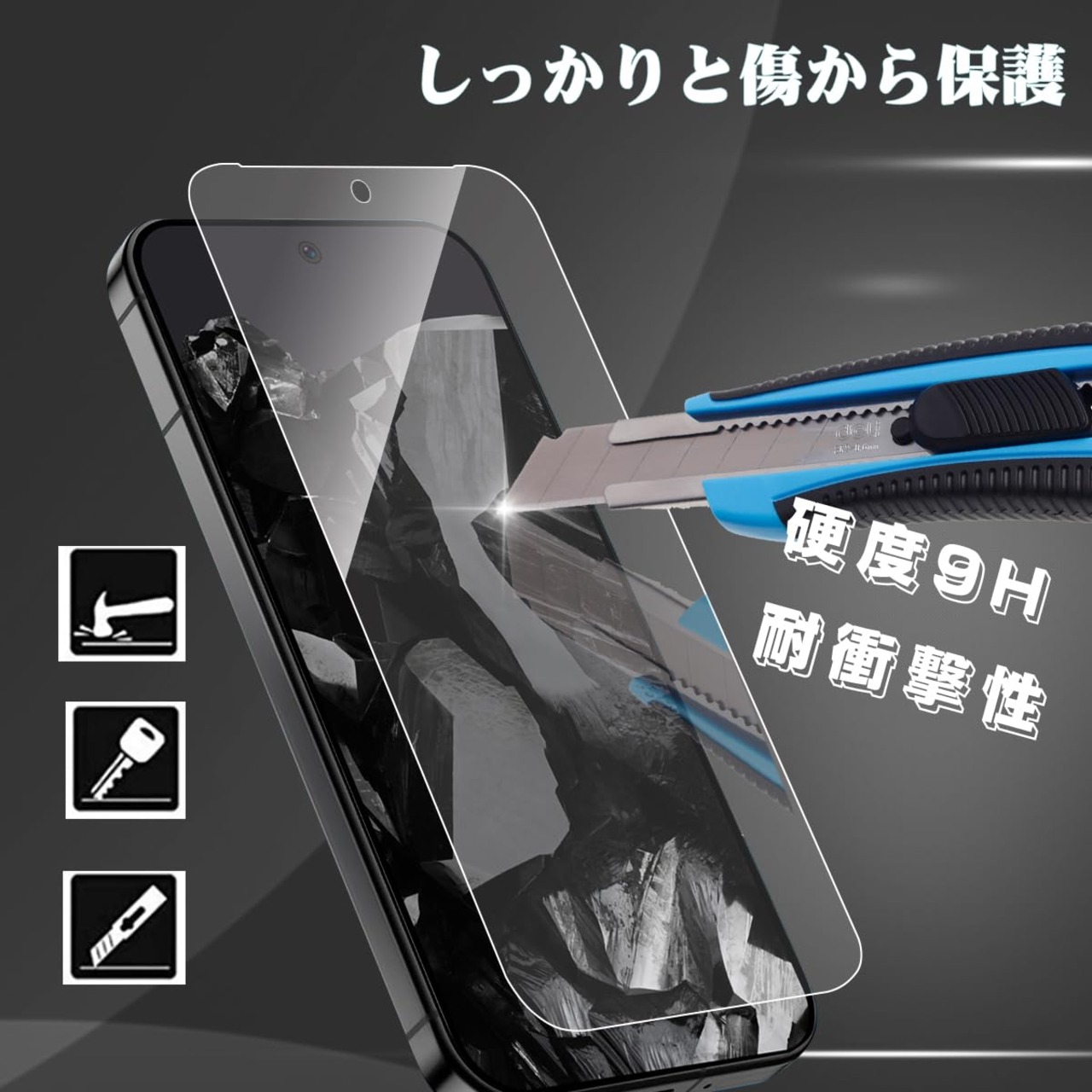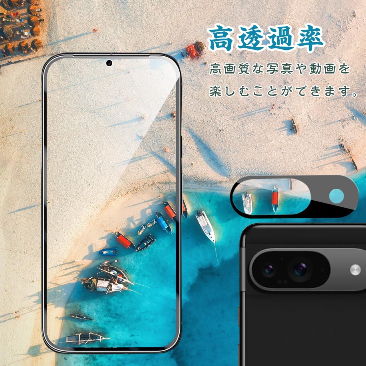 Google Pixel 9 用 ガラスフィルム (2枚)+ カメラフィルム (1枚) 指紋認証対応 グーグルピクセル 9 対応 液晶保護フィルム ガイド枠付き 自動吸着 硬度9H 強化ガラス 耐衝撃 ガラスは日本旭硝子..高透光性を採用