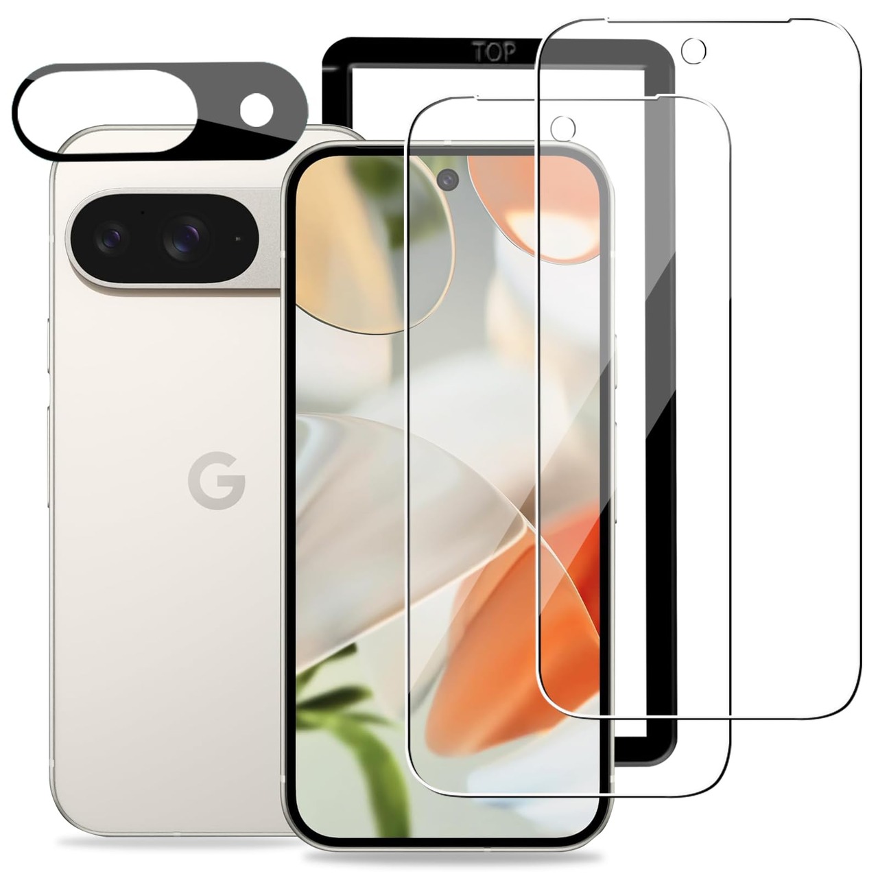Google Pixel 9 用 ガラスフィルム (2枚)+ カメラフィルム (1枚) 指紋認証対応 グーグルピクセル 9 対応 液晶保護フィルム ガイド枠付き 自動吸着 硬度9H 強化ガラス 耐衝撃