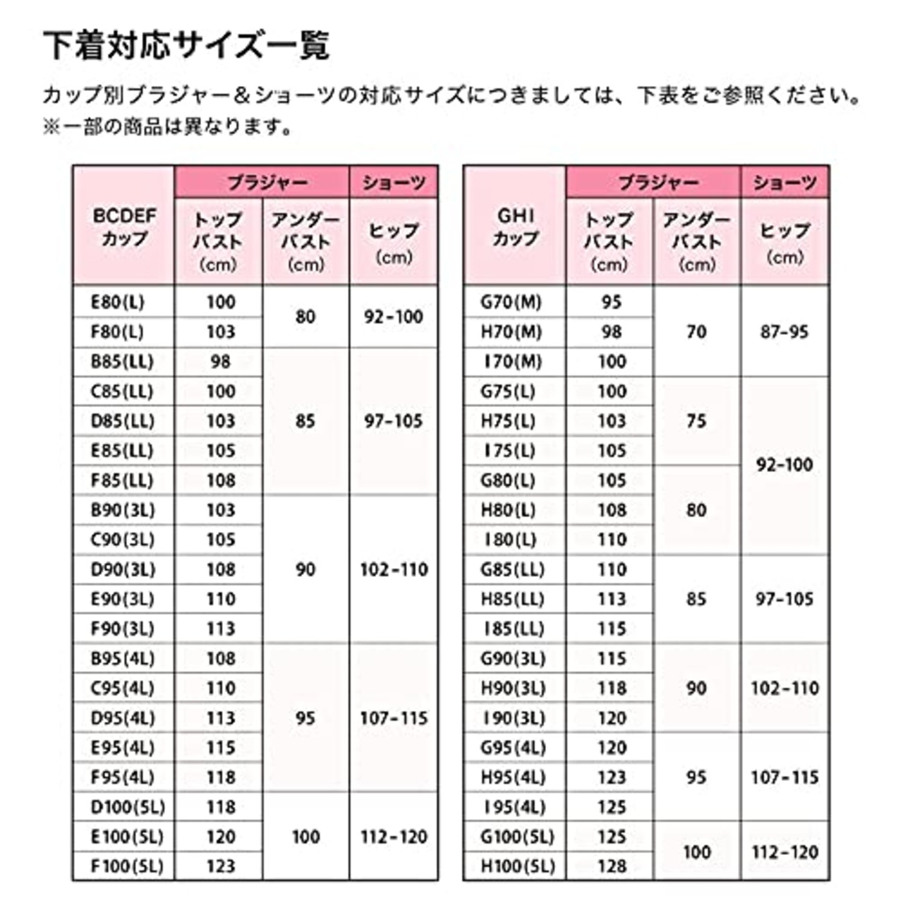 ※()内のサイズはショーツサイズです