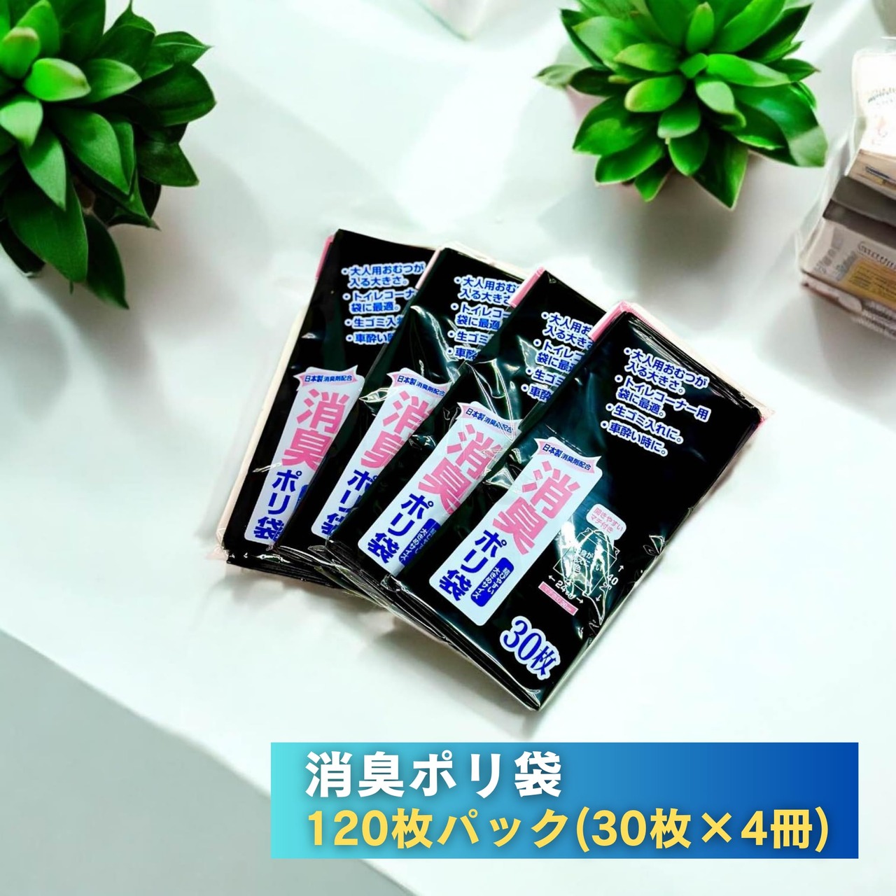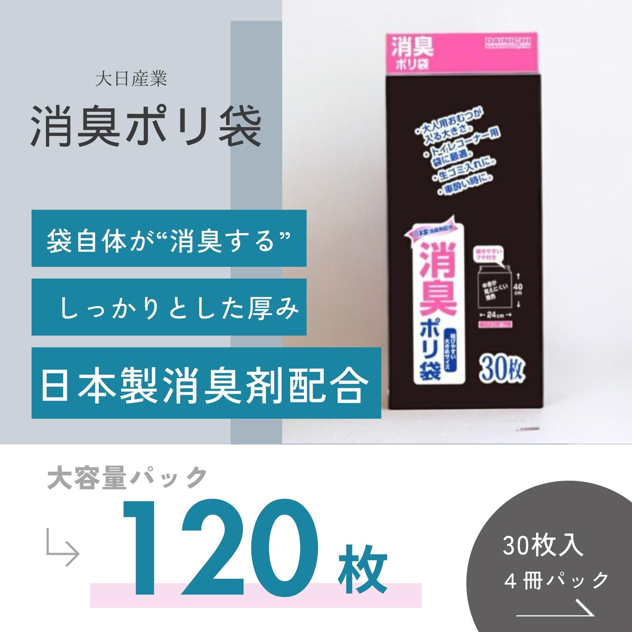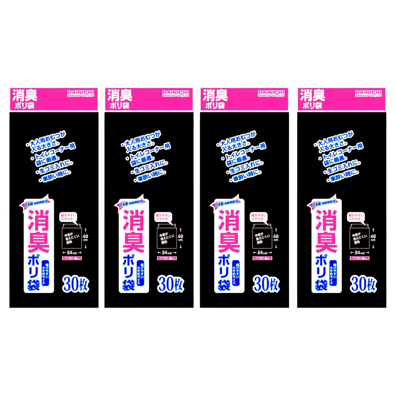 【お得な大容量120枚】大日産業 消臭ポリ袋 120枚 (30枚×4冊) 30cm×40cm 厚さ0.02mm 日本製消臭剤配合 黒 サニタリー 消臭袋 防災用品 おむつ 生ごみ 車酔い トイレコーナー用 ごみ袋 大容量, ブラック