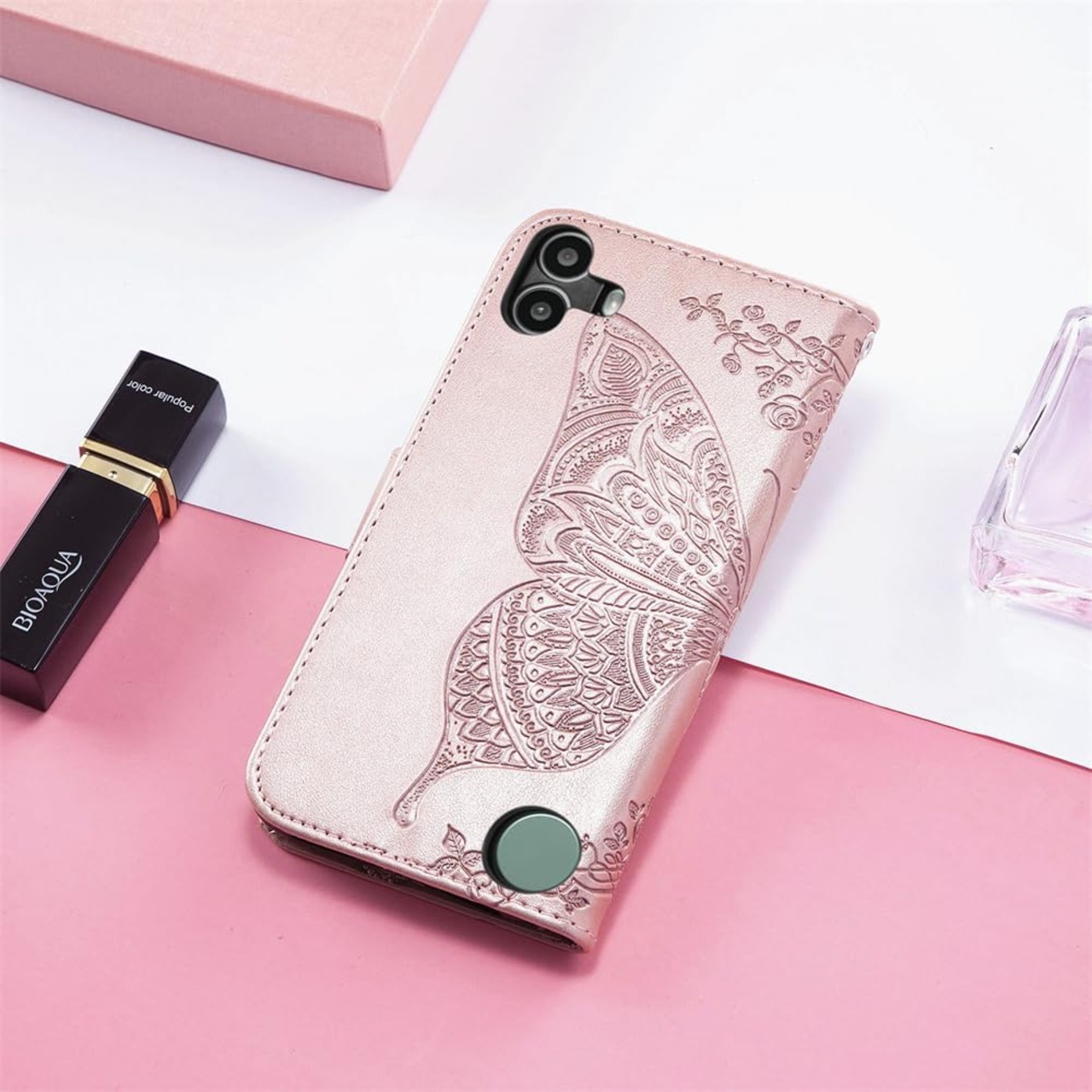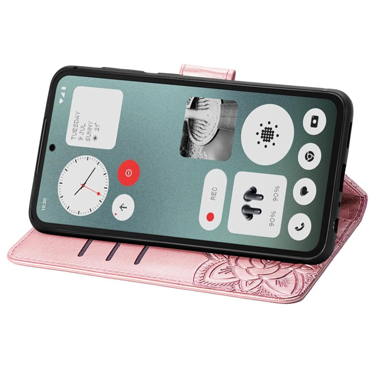 磁気フリップカバーカードスロットエンボス電話シェル Nothing CMF Phone 1 CMFPhone1 レザーケースビジネスウォレットクリップスタンドホルダー電話カバー(ローズゴールド、CMF電話1)