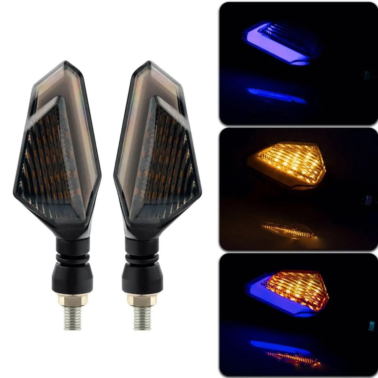 ウインカー バイク ランプ フラッシャー シグナル テール ライト スクーター アクセサリー ユニバーサル バイク ウィンカー アンバー ウィンカー インジケーター ブレーキ ライト(Blue Yellow)