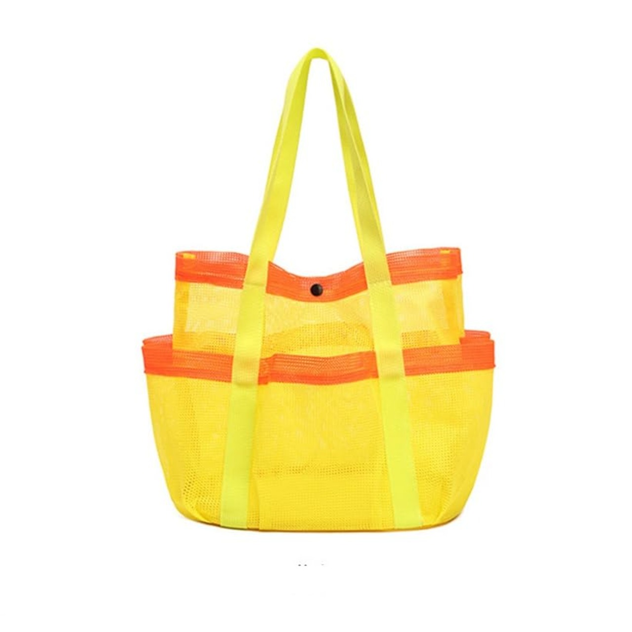 メッシュバッグ プールバック 速乾性 ポケット多数 スパバッグ 子供プールバック 小物ポケット付き 洗面用具入れ タオル 衣類 スリッパ 収納袋 砂遊び 海遊び 温泉バッグ 手提げカバン 収納力 折り畳み可能 手提げバッグ (イエロー) [並行輸入品]