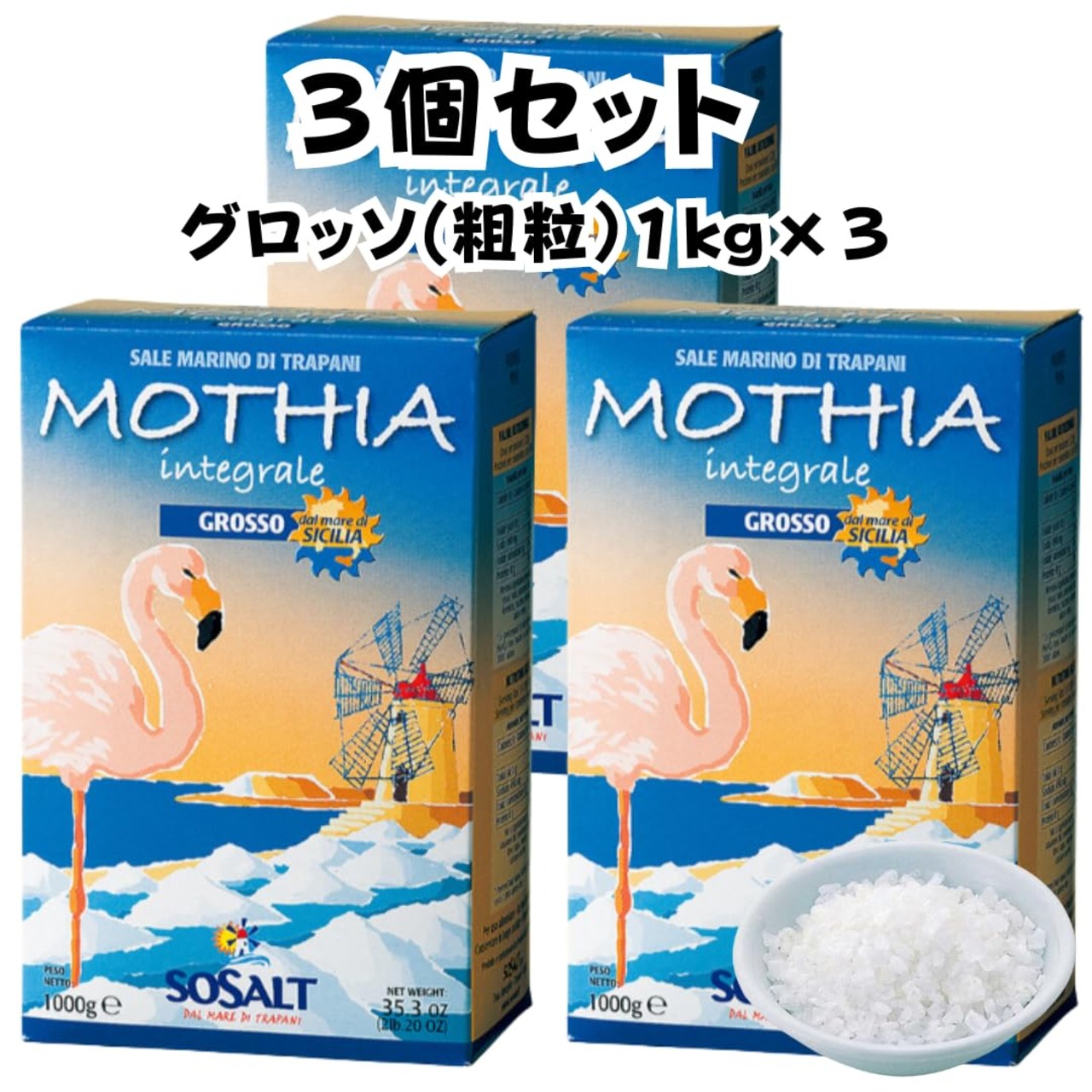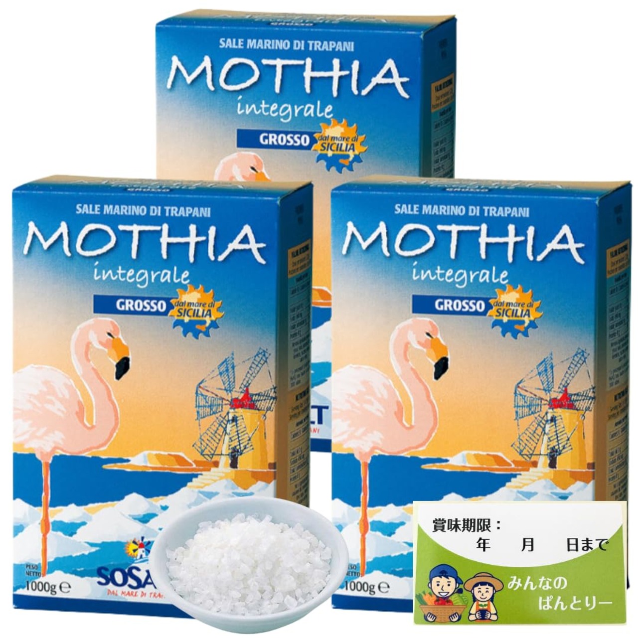 ソサルト 塩 モチア モティア インテグラーレ グロッソ 粗粒 【3個セット】 合計3kg サーレ シチリア島 天然 海塩 /みんなのパントリー特製シール