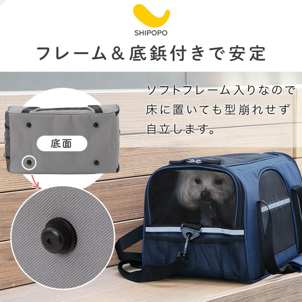 ぼん家具 ペットキャリーバッグ ボストン ショルダー 2WAY 超小型犬 猫 5kgまで 飛び出し防止 旅行 通院 避難 タブルファスナー SHIPOPO ネイビー