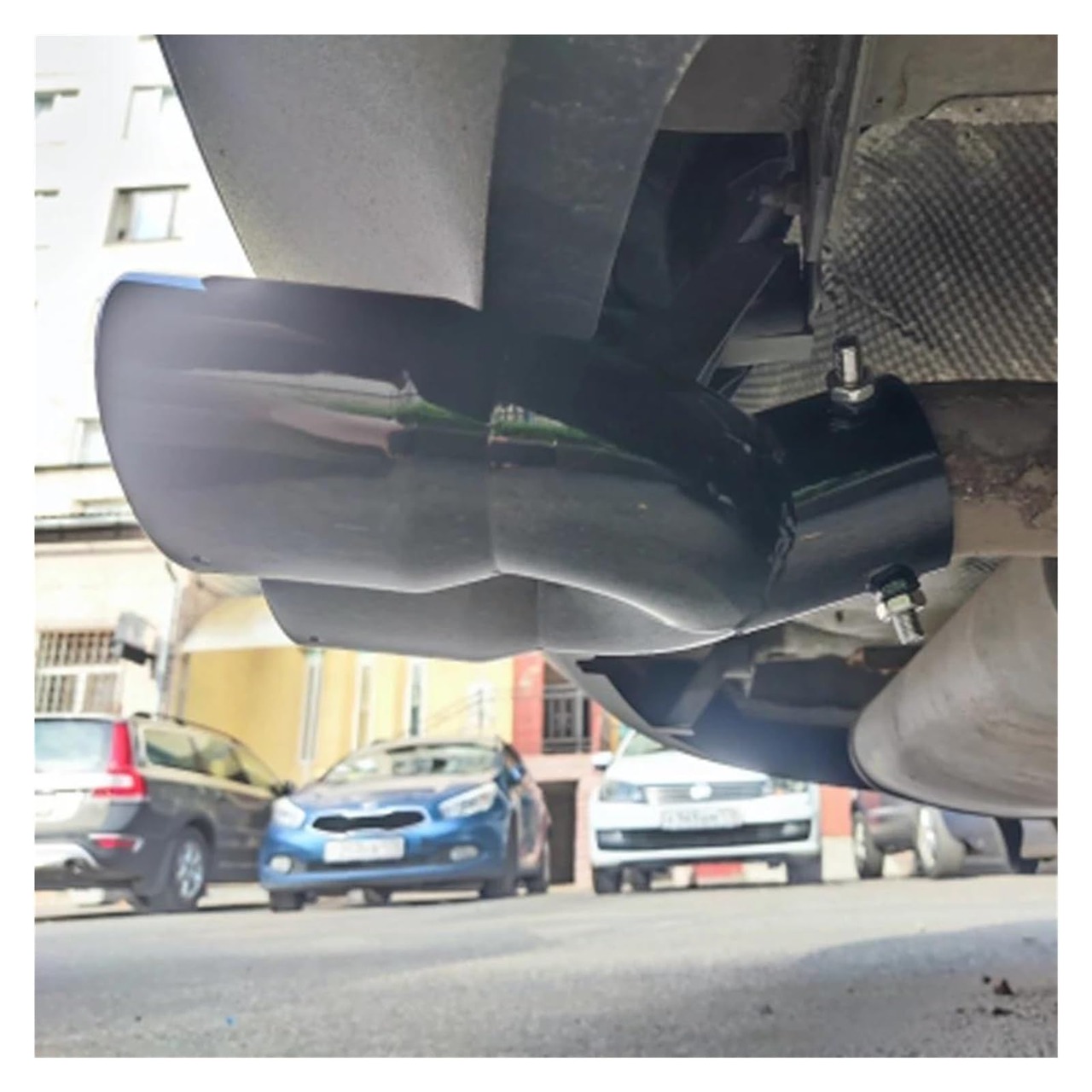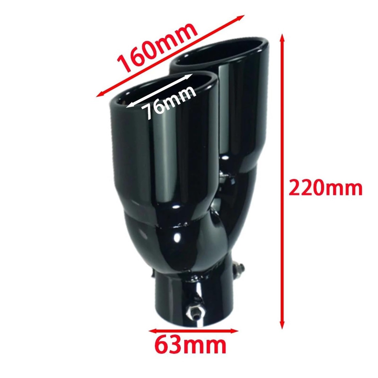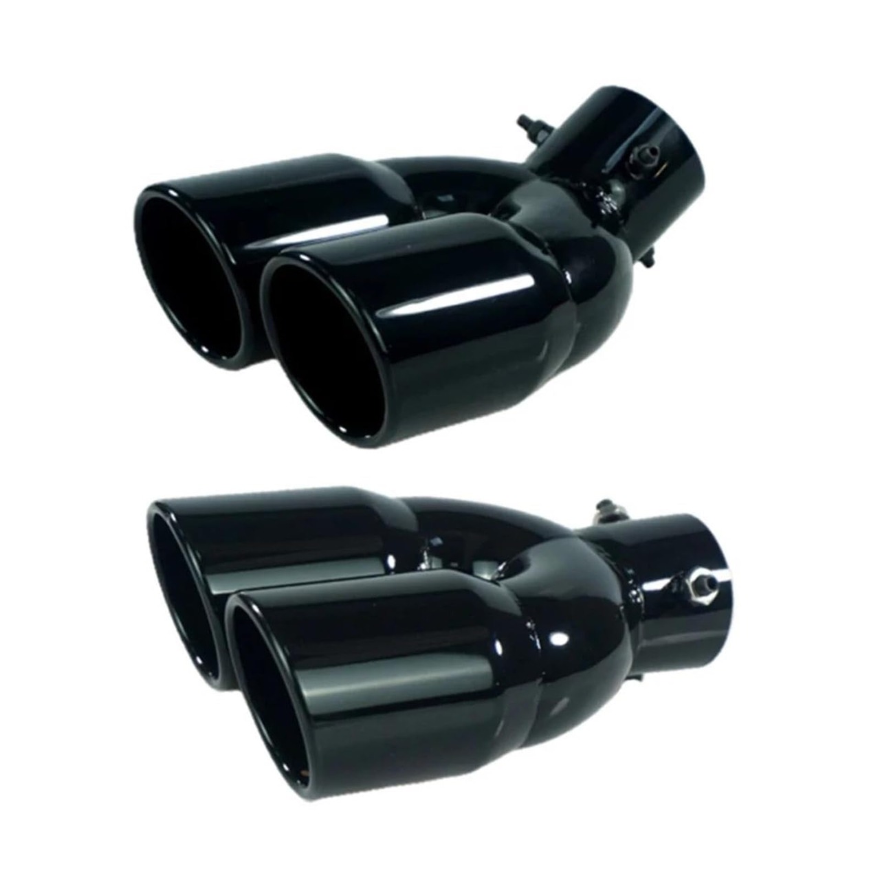 テールパイプ ユニバーサルカーアクセサリー 63 ミリメートル車入口ダブルバレルリア排気チップテールパイプマフラーブラックチタン出口ステンレス鋼 排気管(Silver Z)