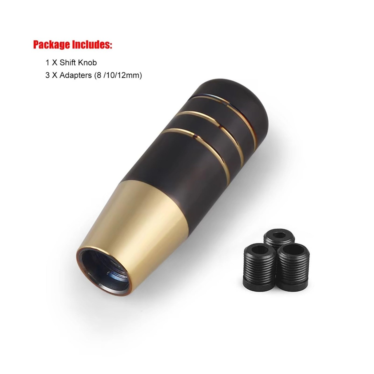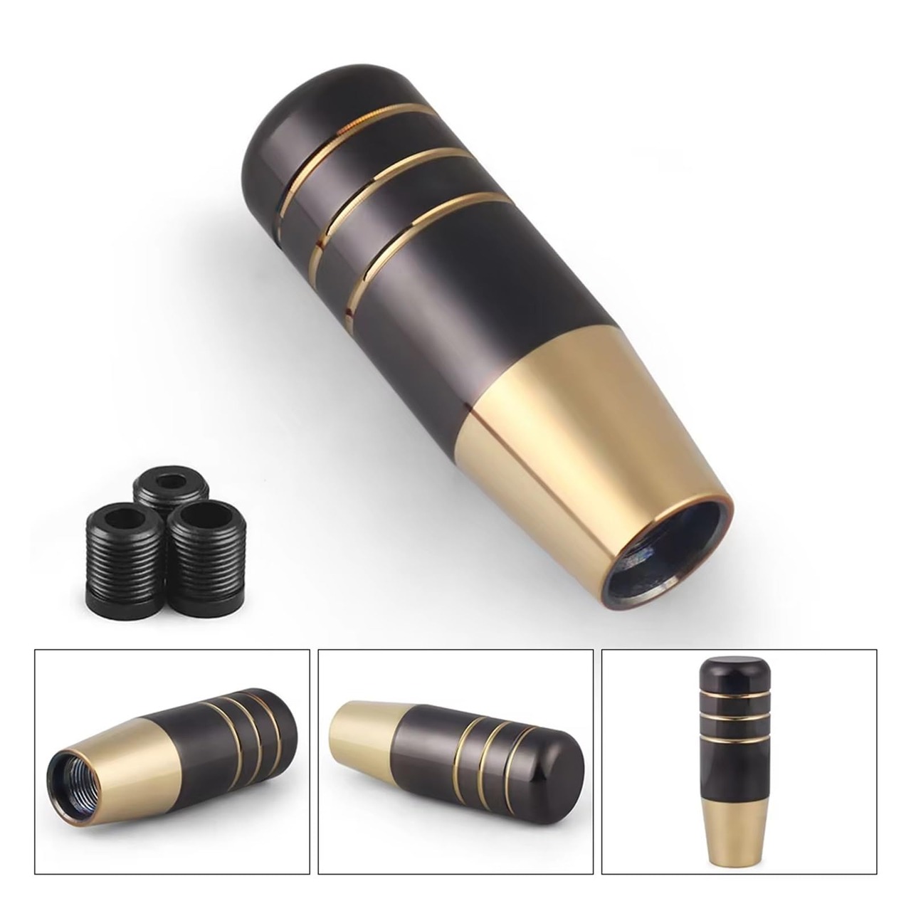9CM アルミ ブラック ゴールド ギアシフトノブ レーシングカー ユニバーサル マニュアルトランスミッション シフター レバーノブ 3つのアダプター付き
